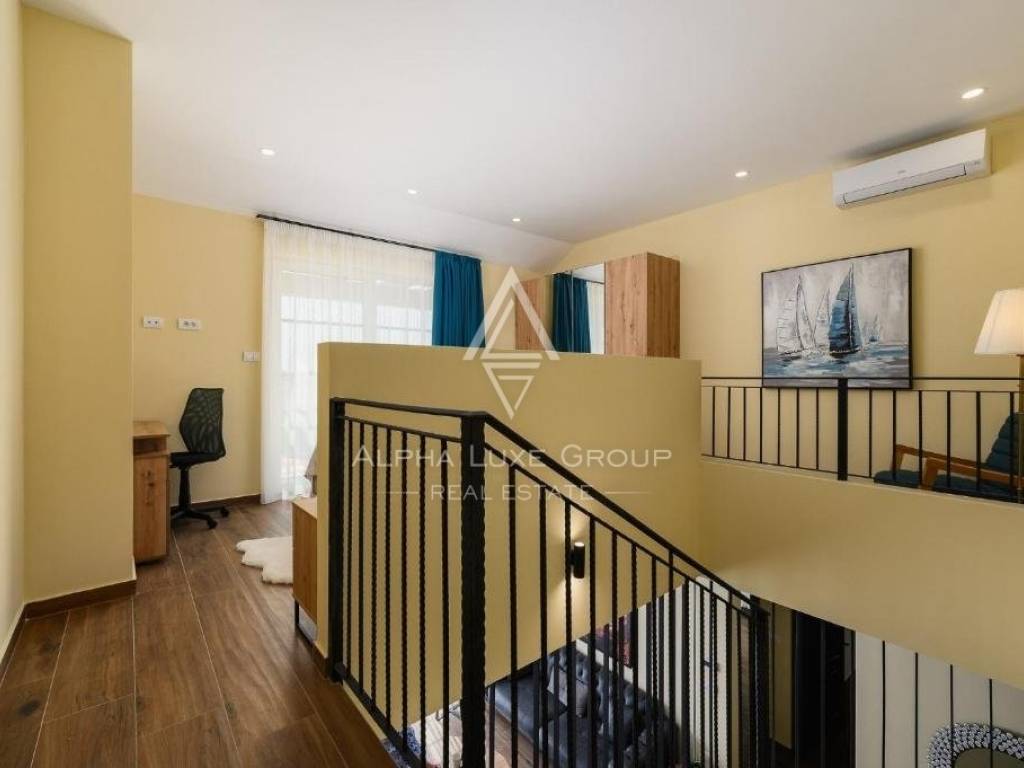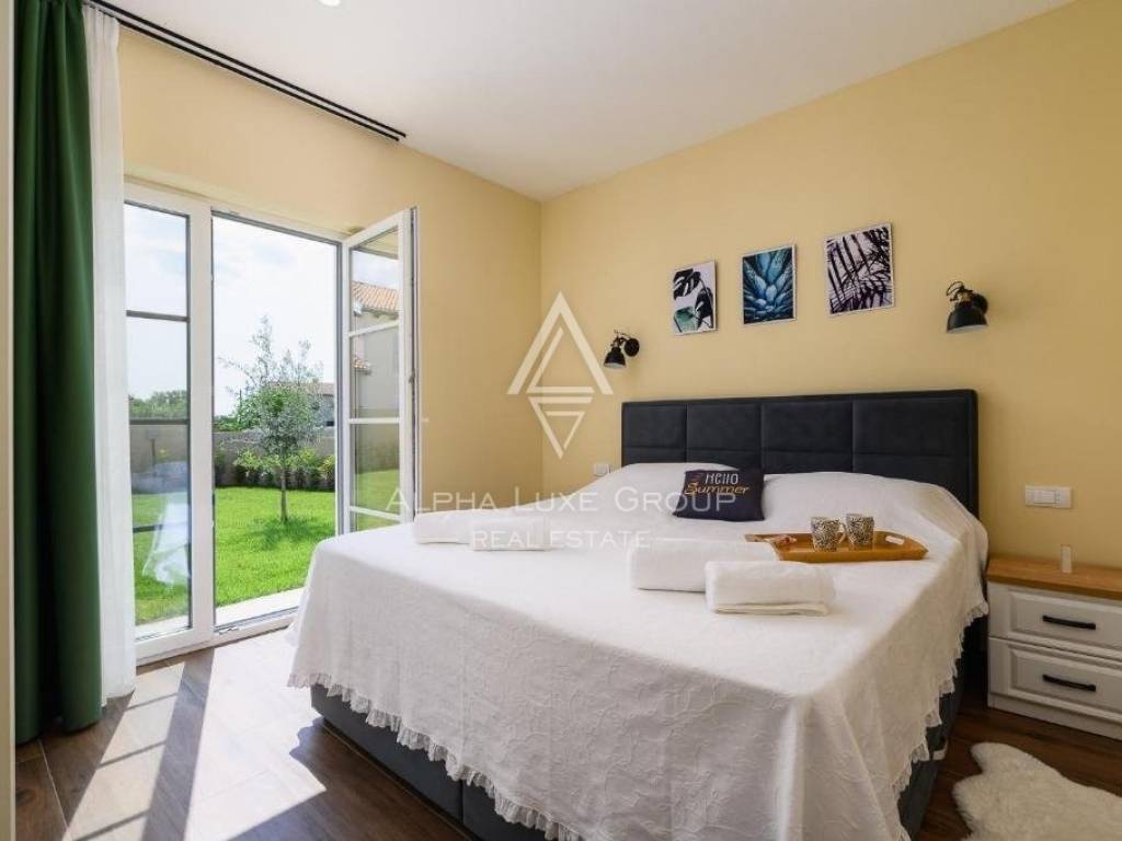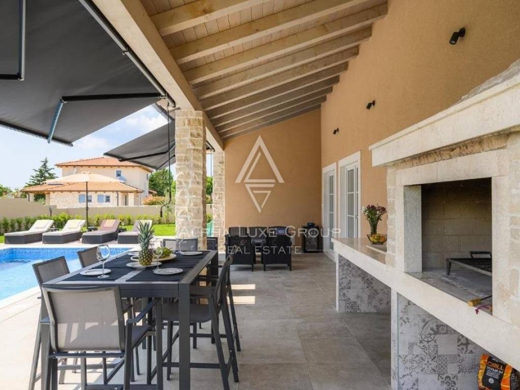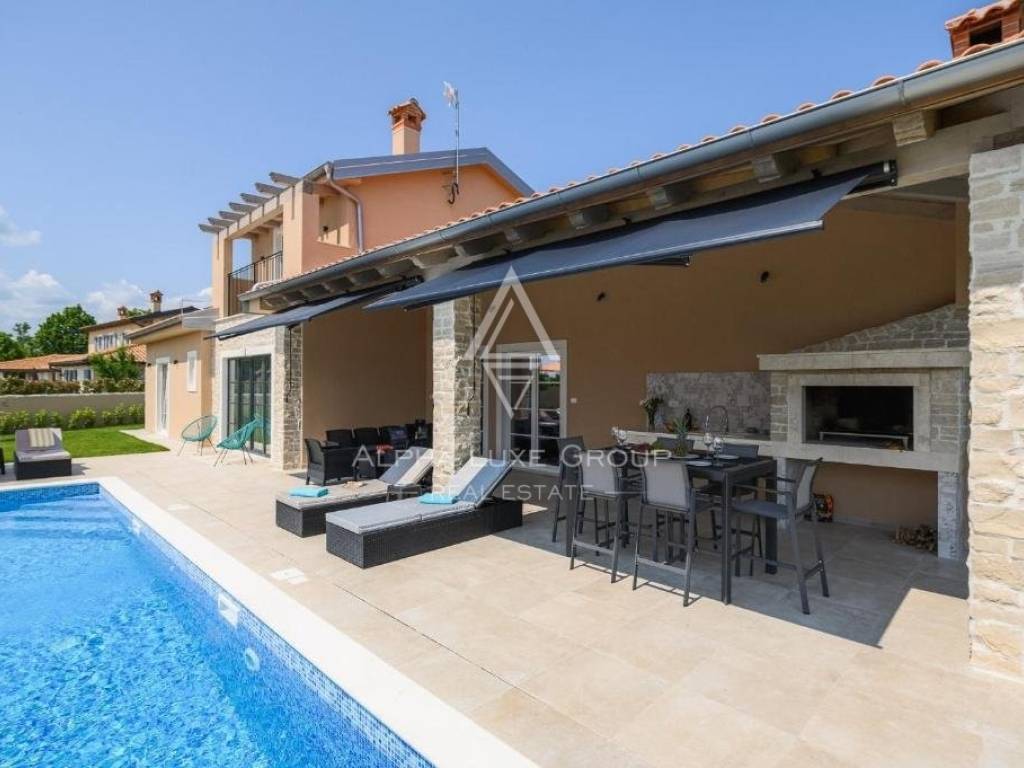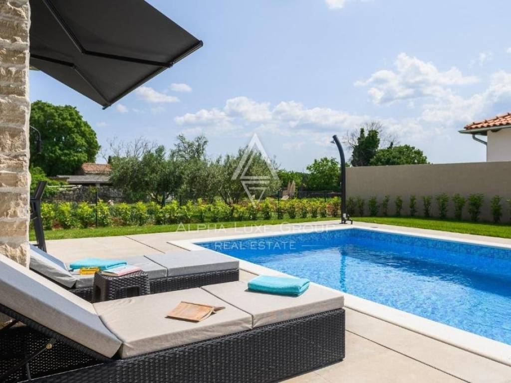 In the tranquil village of Kanfanar, nestled in the heart of Istria's hinterland, a stunning home offering modern comforts and timeless architecture is available for purchase. Just a 15-minute drive from Rovinj, this property provides a blend of mild Mediterranean climate and the natural landscape of inner Istria, appealing to both nature lovers and those appreciative of historical heritage.