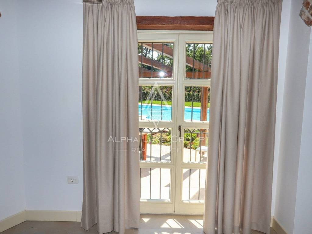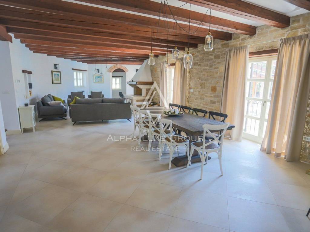 Outside, the property boasts a large swimming pool with an adjacent covered terrace equipped with a barbecue and large dining table, perfect for outdoor entertainment. The villa also offers ample parking at the entrance and is secured with a wall and fence, enhancing both privacy and security.