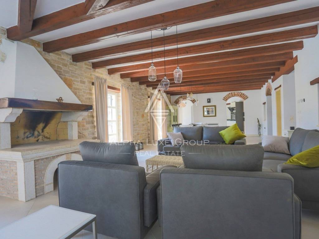 Discover this expansive detached villa set in a peaceful locale near the quaint town of Tinjan, Istria, enveloped by a sprawling 2,347 m² plot. Designed for ultimate privacy and comfort, the villa’s layout includes both ground and upper floors, perfectly suited for residential or lucrative rental opportunities.