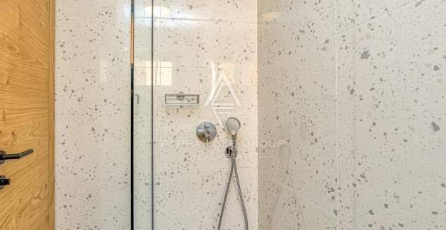 The house consists of four fully furnished apartments, each thoughtfully designed for comfort and practicality. The units, connected by internal stairs, feature approximately 30 m² of space per apartment. The ground and first-floor apartments each include a separate bedroom with a double bed and an additional single bed, a fully equipped kitchen with a dining area, and a modern bathroom with a shower. The second and third floors host studio apartments with a combined living, dining, and sleeping area, along with a private bathroom. A shared washing machine and an additional toilet are conveniently located in the basement for communal use. All apartments are equipped with air conditioners, ensuring comfort year-round.