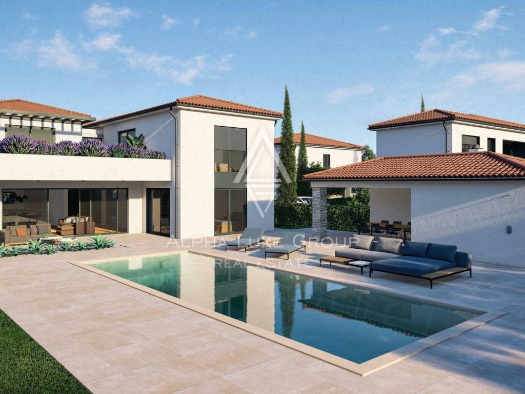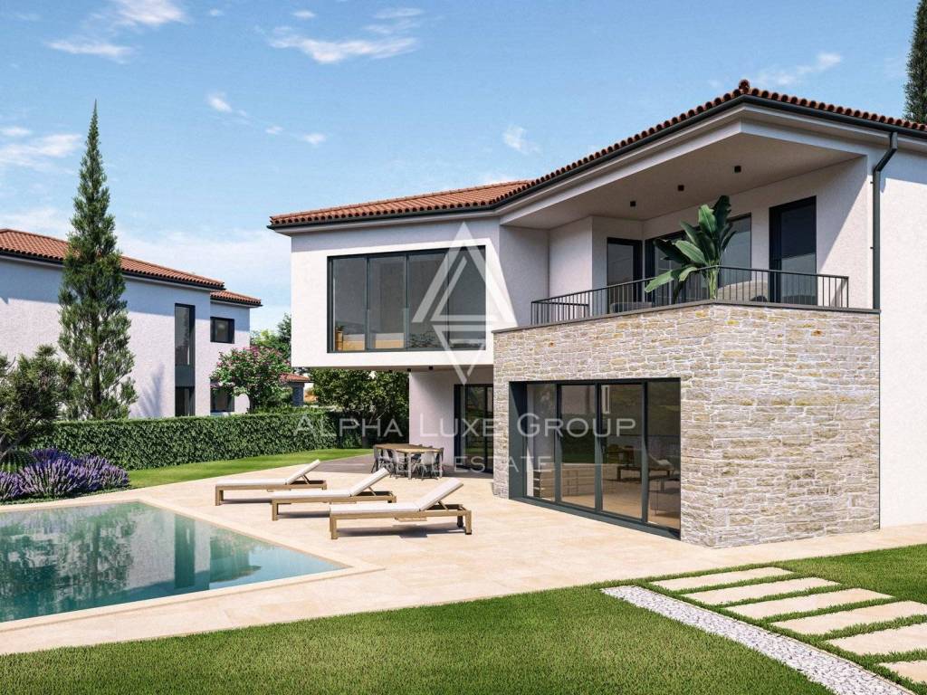 Located near Vrsar, this exquisite detached villa offers premium quality construction and luxurious amenities. With a spacious 169 m² interior, a 32 m² pool, and a beautifully landscaped 679 m² plot, this property is perfectly positioned just 7.5 km from the sea and Lim Canal, 11 km from Vrsar, and 15 km from Poreč. Essential facilities, including the motorway, shops, restaurants, and schools, are conveniently located only 2 km away.