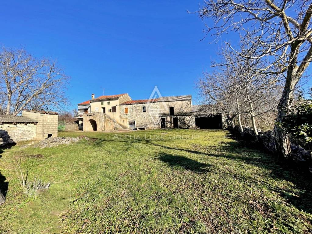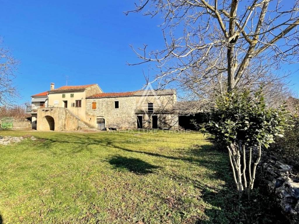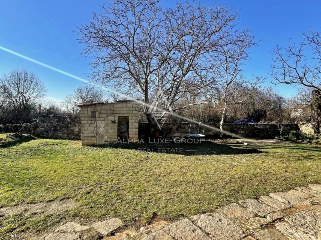 Situated on the edge of a quaint village between Sveti Lovreč and Kanfanar, this charming property offers a traditional Istrian stone house, a barn, and a spacious courtyard. The ground floor of the house features two cellars, while the first floor includes a cozy apartment with a living room, kitchen, dining area, bedroom, bathroom, and two terraces. With a total gross floor area of 260 m² (130 m² per floor), this property is perfect for those seeking a blend of rustic charm and modern amenities.