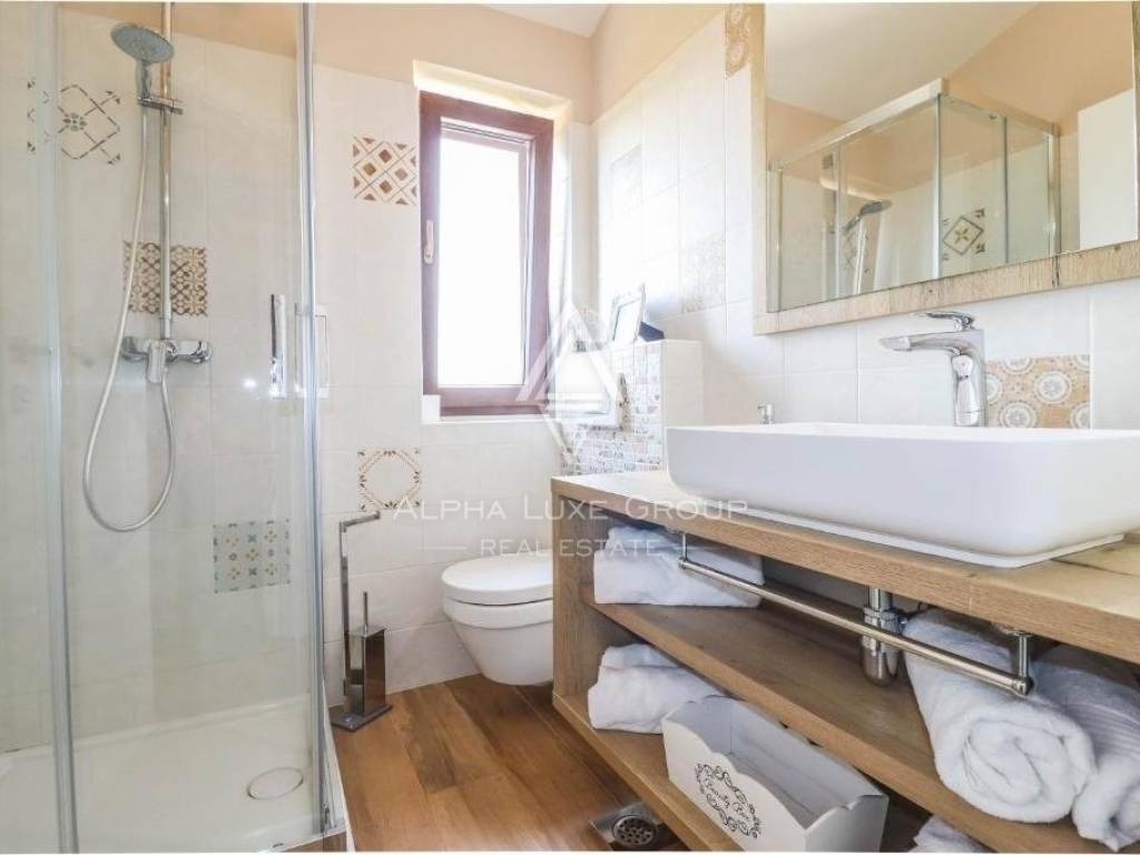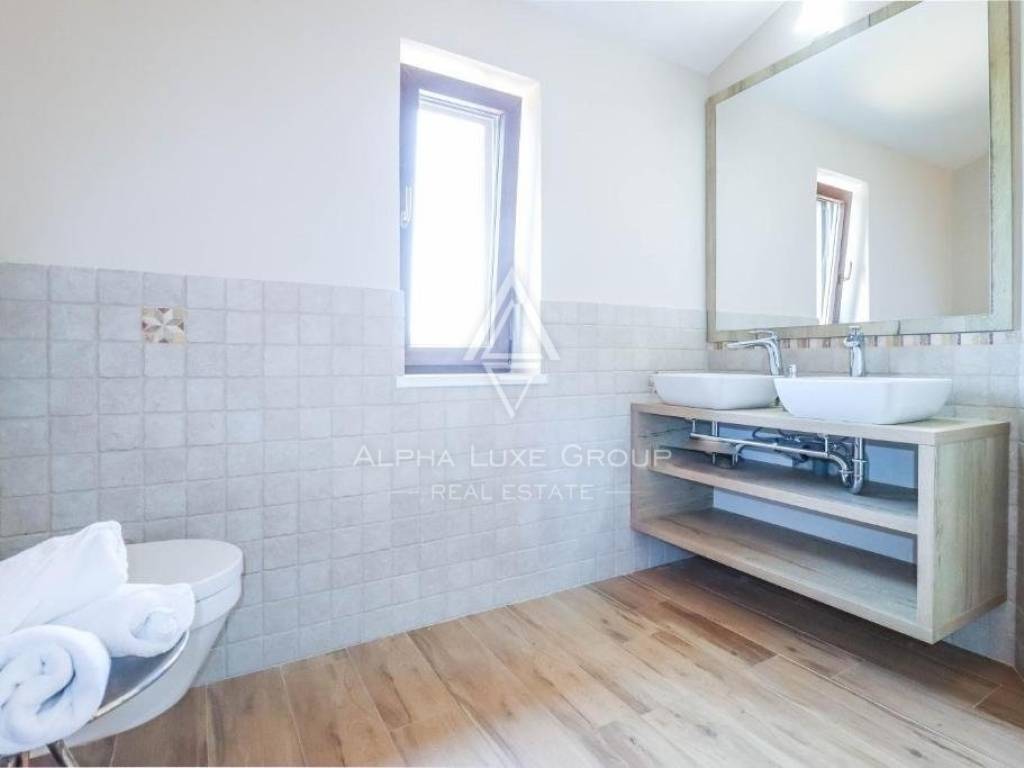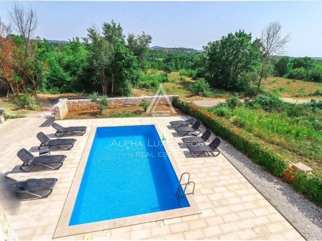 Nestled in a serene location between Vrsar and the Lim Channel, this authentic stone house combines Istrian charm with modern comfort. Set on a 650 m² plot, the property boasts a total living space of 168 m². The ground floor features a spacious living room seamlessly connected to the kitchen and dining area in an open-plan layout, providing direct access to a covered terrace and swimming pool. Additionally, this level includes one bedroom, a bathroom, a guest toilet, and a storage room.