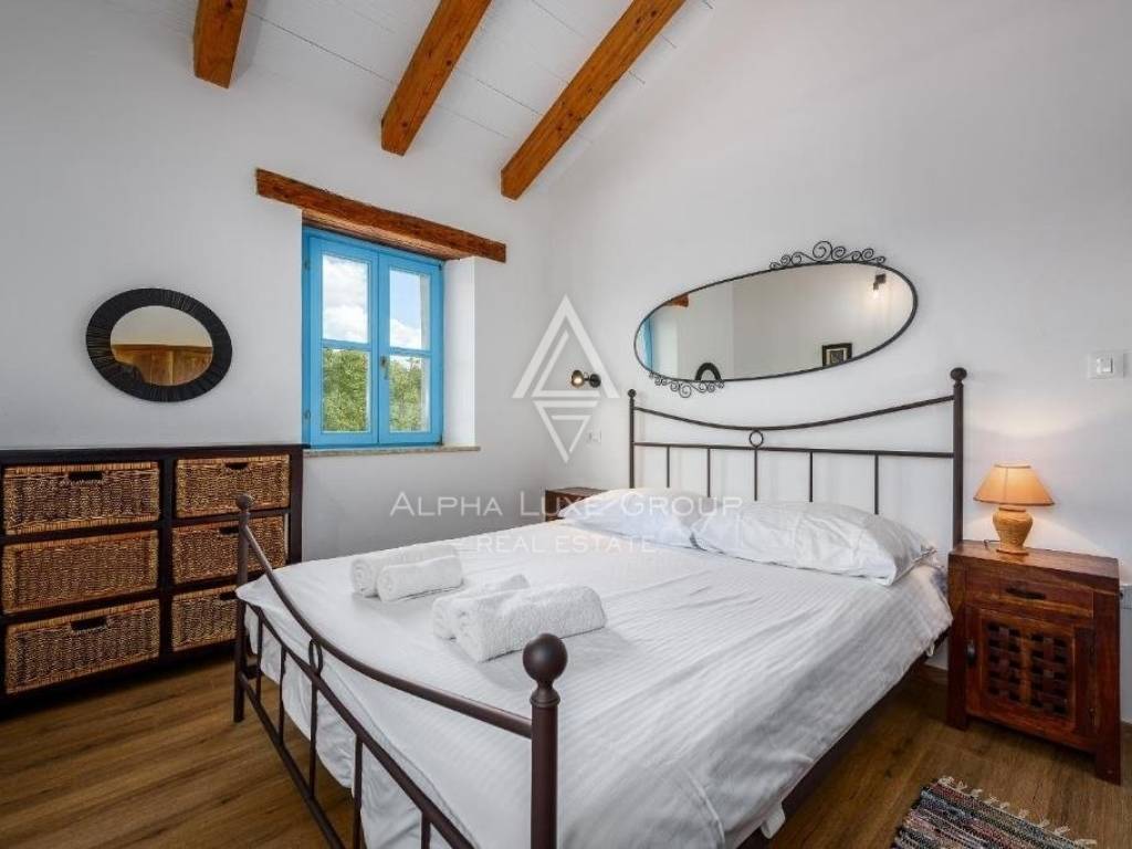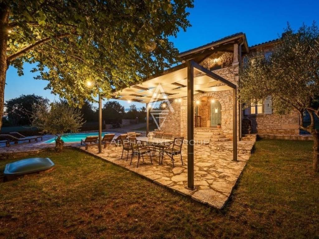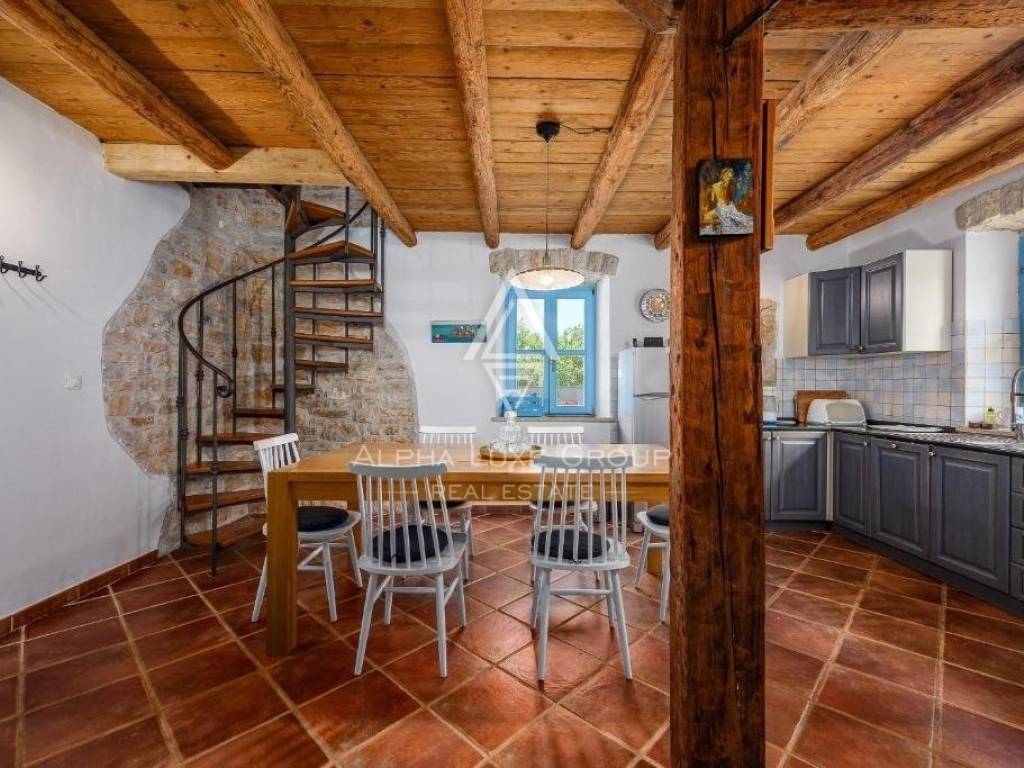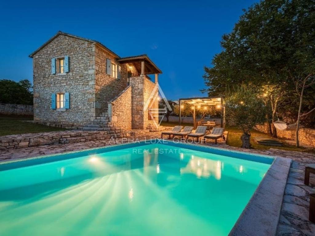 Discover this enchanting Istrian stone house with a swimming pool, situated in a peaceful village just 15 minutes from the vibrant town of Poreč. Offering a serene retreat, the property is set on a generous 969 m² plot, with a carefully designed 110 m² interior spanning two levels.