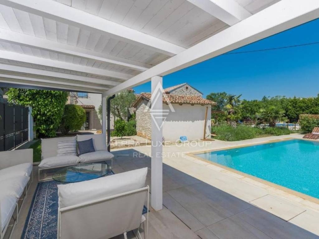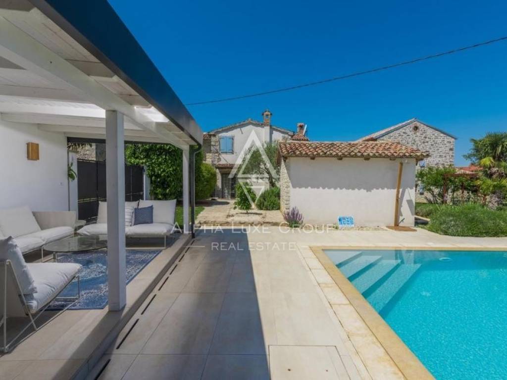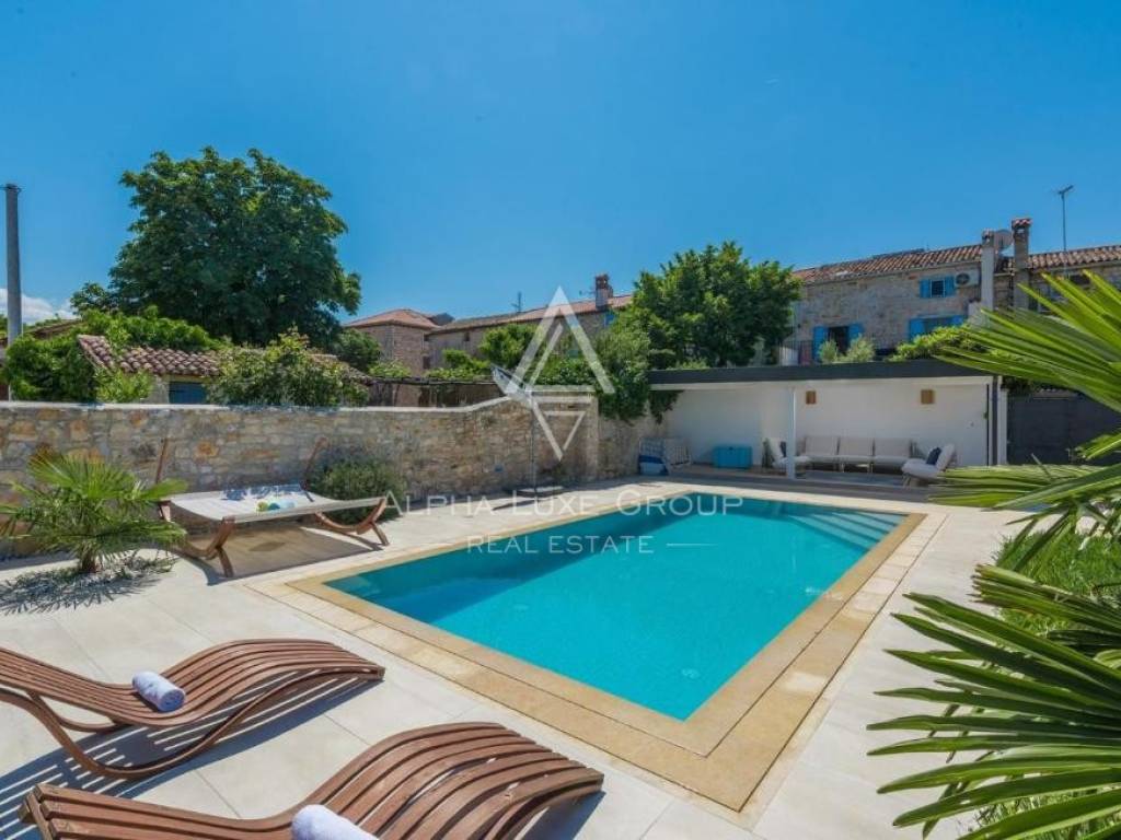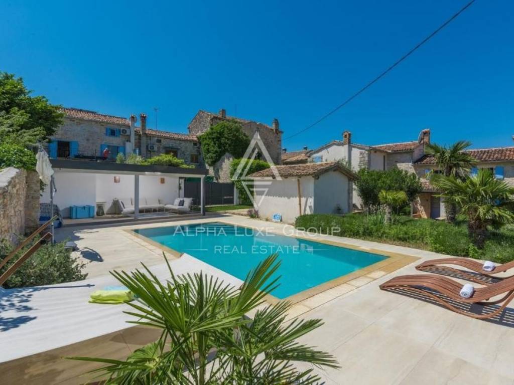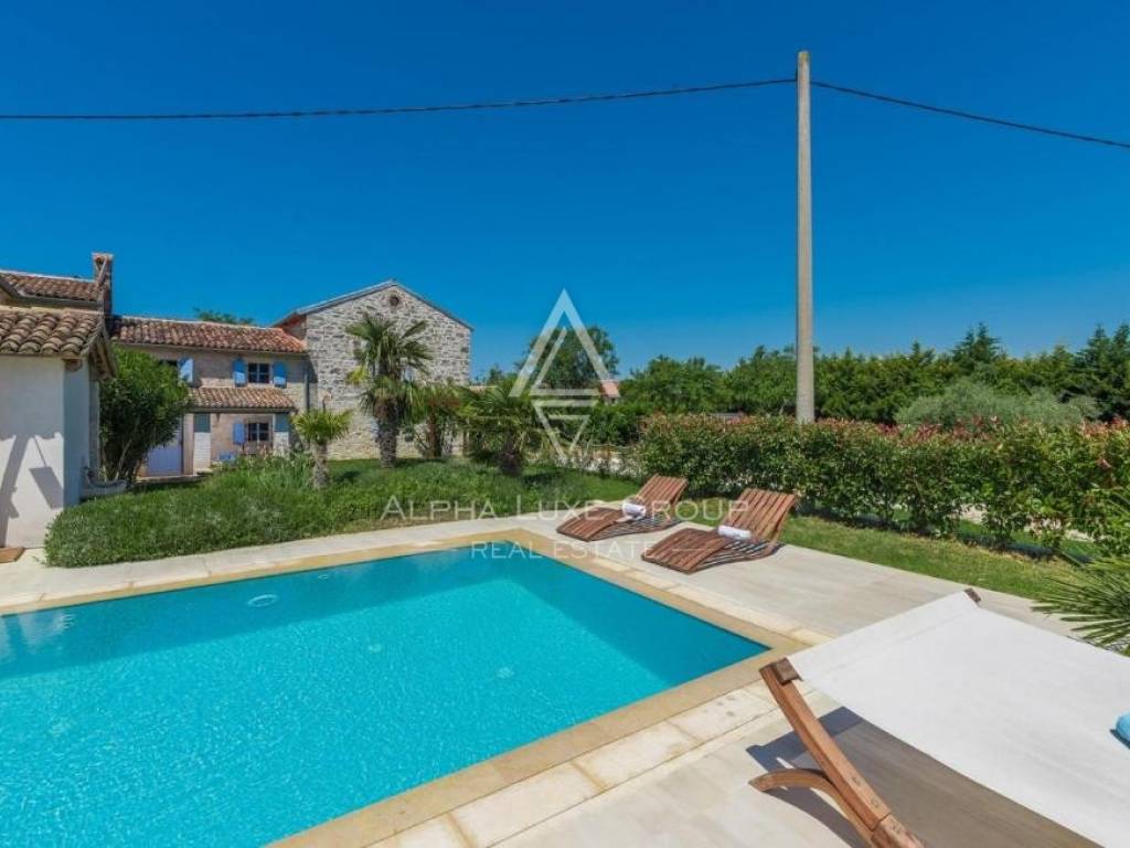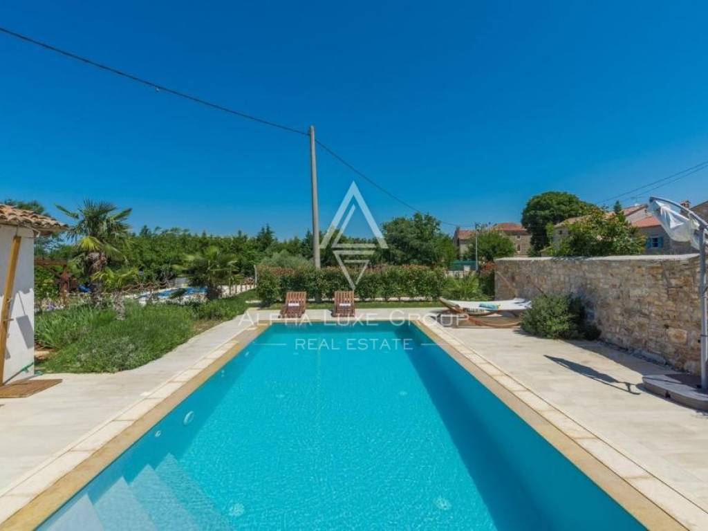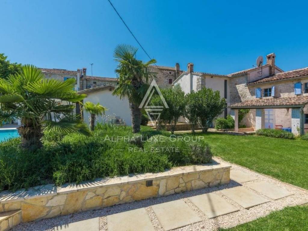 Only 4 kilometers from the Adriatic Sea and the historic center of Poreč, this charming estate features two fully renovated Istrian stone houses on a beautifully landscaped 770 m² plot. Combining rustic charm and modern comfort, the property offers 281 m² of total living space, a private swimming pool, and a Mediterranean garden designed for full relaxation and privacy.