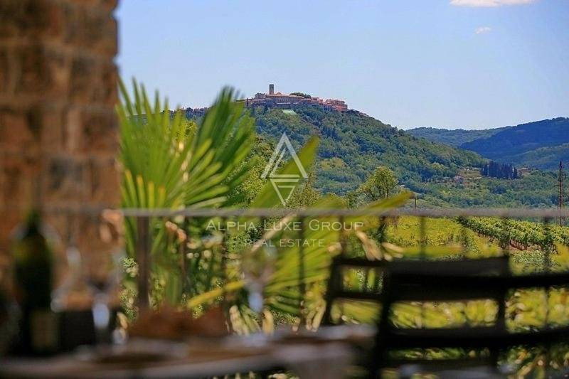 The houses are located in a peaceful environment with a beautiful panoramic view of nature, hills, and the town of Motovun.