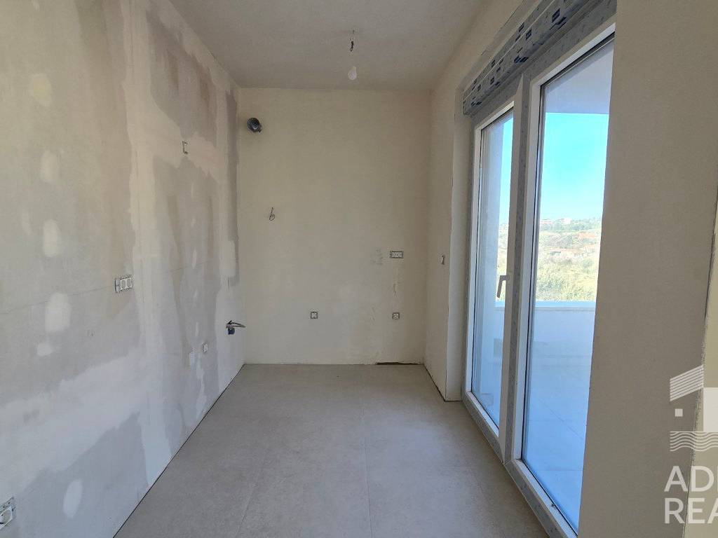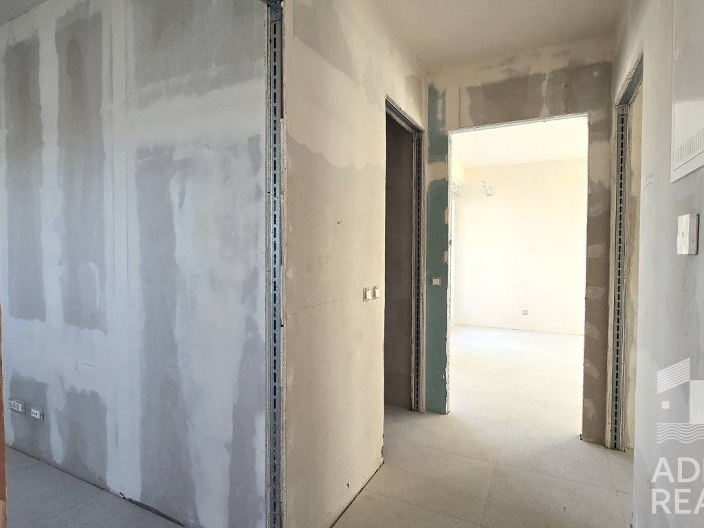 The building is under construction, with completion planned by the end of 2025. Flexible payment plans are available. Each apartment consists of a spacious living area with kitchen and dining space (23.90 m2), two comfortable bedrooms (8.8 m2 and 12.41 m2), a bathroom, hallway, and a balcony (8.92 m2) offering a sea view. A private outdoor parking space is included in the price.