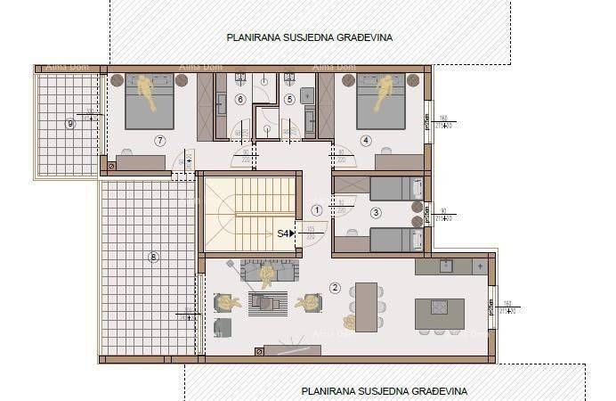 In a quiet part of the city, just a few minutes" drive from the center of Pula, there is a modern residential project consisting of 11 contemporary buildings, carefully integrated into a harmonious and safe whole, ideal for family living.For sale is apartment S4, located on the 2nd floor of Building 3, with an area of 111.25 m² (90.68 m² of enclosed space), featuring three bedrooms (9.24 m², 13.32 m², 15.64 m²), two bathrooms, a spacious living area (37.44 m²), a hallway, a loggia (22.07 m²), and a covered terrace (8.03 m²). This apartment offers comfort and a view that perfectly complements the impression of a modern home.The apartment has a functional and pleasant layout, while quality construction and modern design ensure a high standard of living.The apartment comes with a storage room and a parking space.The location offers a perfect balance between proximity to all essential amenities (schools, shops, kindergarten, city center) and a peaceful environment, making this property ideal for young families, couples, or as an investment.For more information, please contact:Azra +385 91 611 5706 +385 98 420 885 azra@almadominvest.com