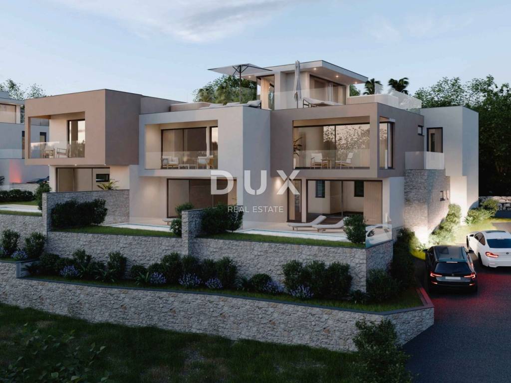 A modern triplex building with three separate residential units, each with a separate entrance, its own pool and garden, is being built on a lofty and elite location in Vodice.