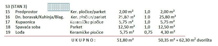 NOVOGRADNJA – dvosobni stan od 50.35m2 + 62.30m2 dvorišta