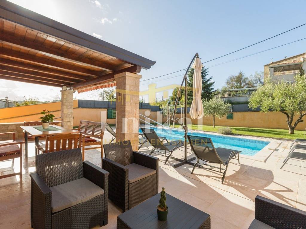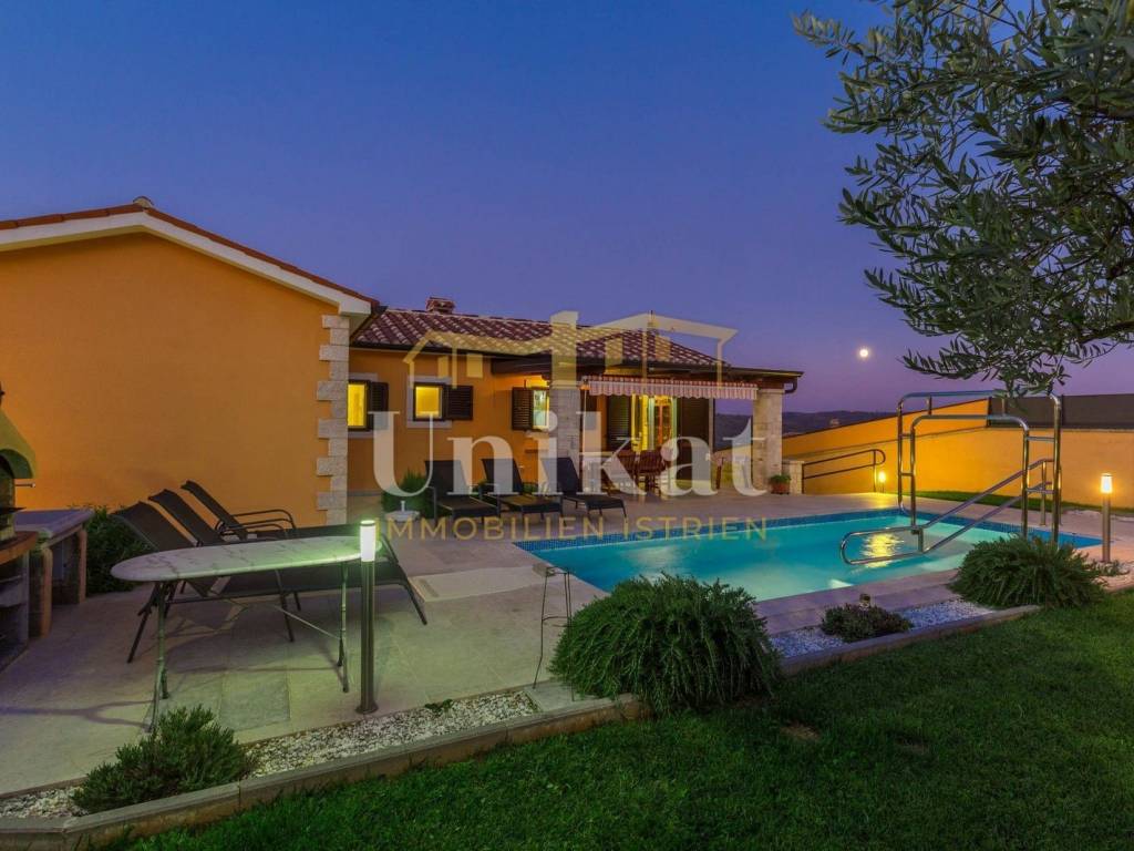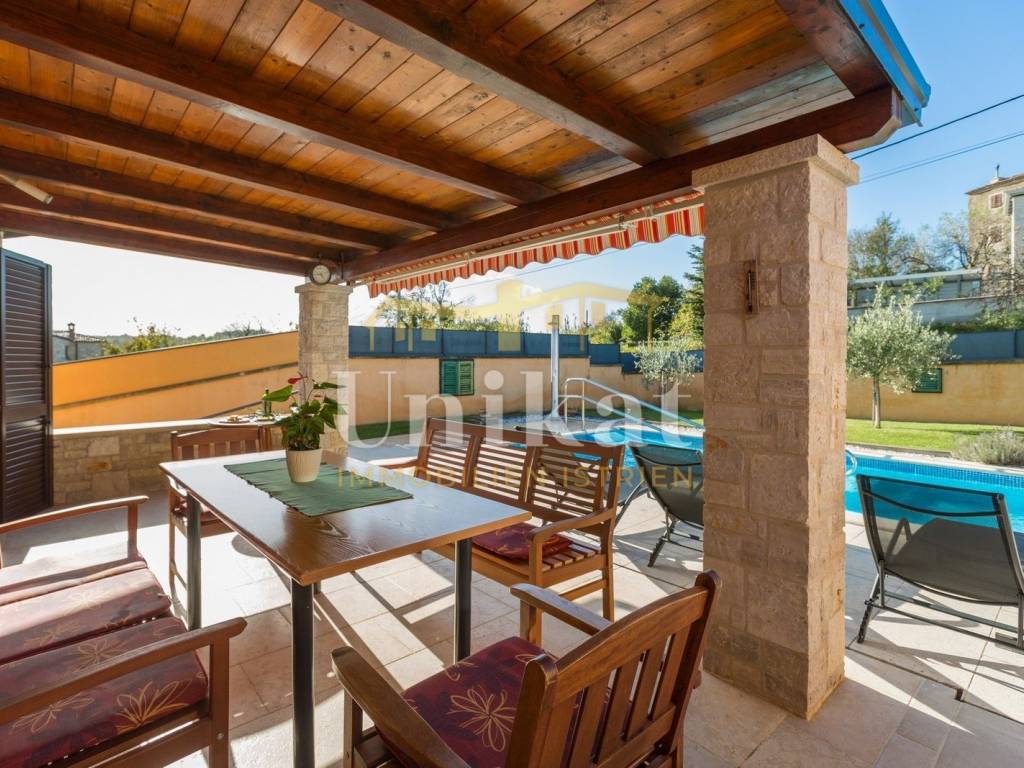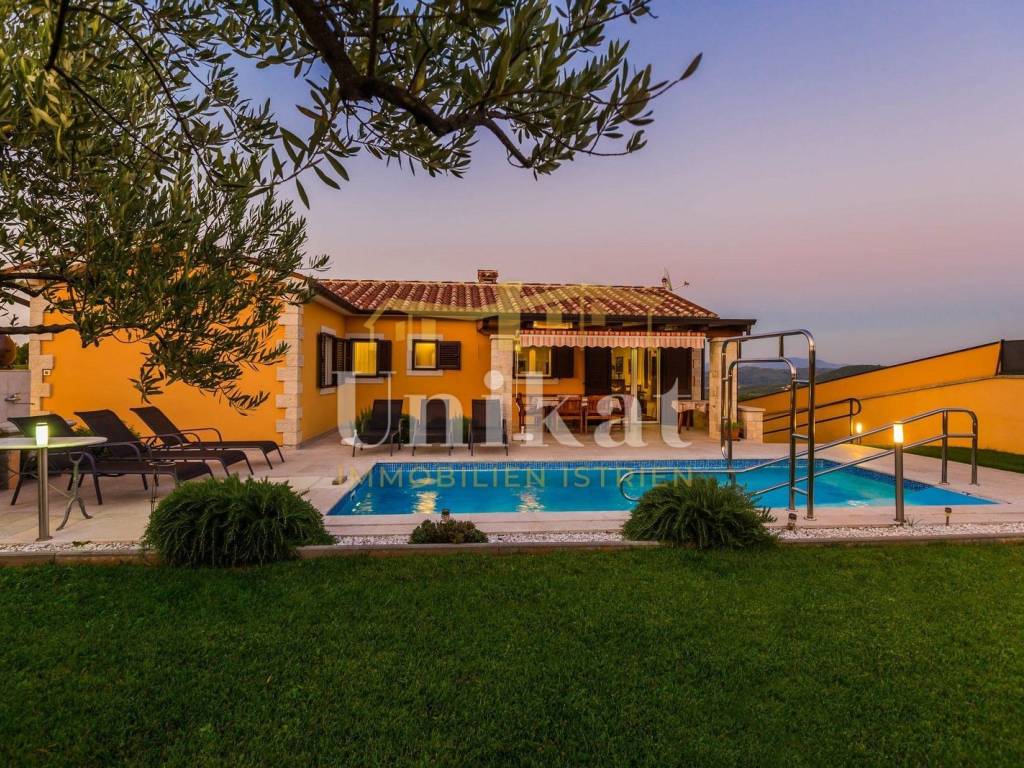 Predivna kuća s otvorenim pogledom na Motovun, udaljena od mora 15 km a od grada Poreča 19 km. Kuća se nalazi na rubnoj poziciji mjesta i okružena je prirodom.