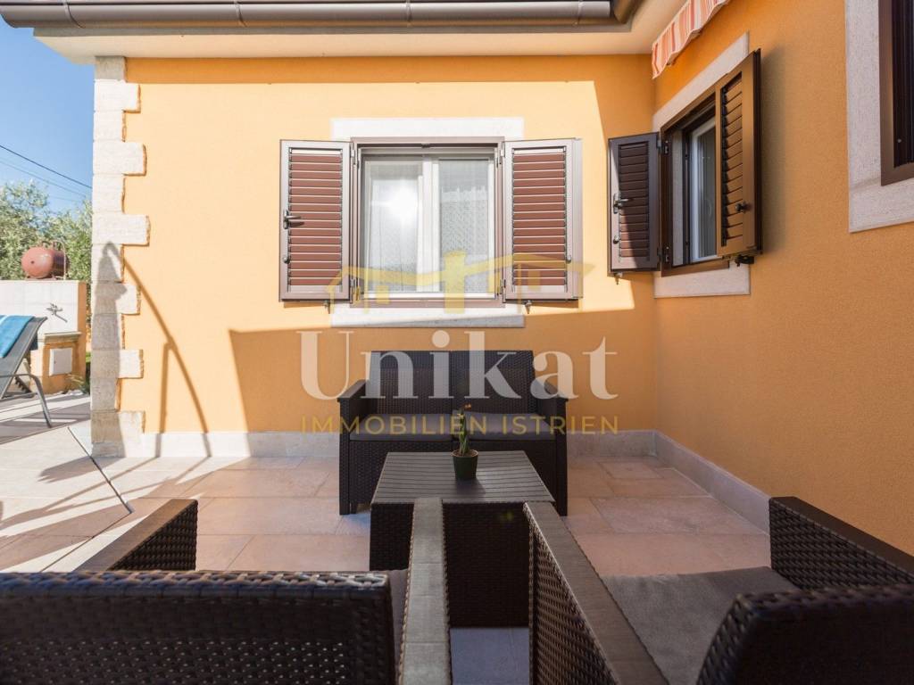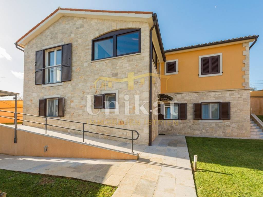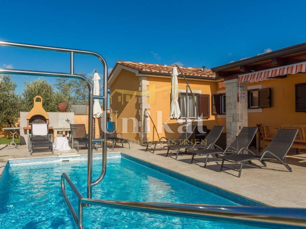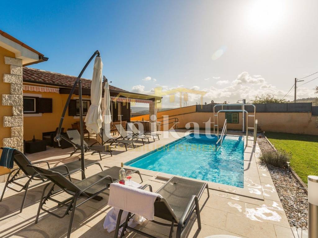 Predivna kuća s otvorenim pogledom na Motovun, udaljena od mora 15 km a od grada Poreča 19 km. Kuća se nalazi na rubnoj poziciji mjesta i okružena je prirodom.