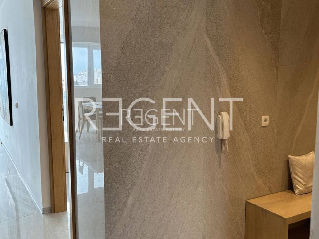 We mediate in the sale of an attractive comfortable two-room apartment of 93 m2. The apartment is located in a residential building with an elevator on the fourth floor with an open view, and is oriented south - north. The apartment includes an entrance area, a modern kitchen, a dining room, a living room that is connected to the exit to the terrace, two bedrooms, one toilet and one bathroom. Central electric heating and underfloor heating are installed throughout the apartment. The apartment has a video intercom and security door. The entire apartment has been renovated with new modern furniture and top-quality porcelain tiles. For all inquiries and viewings, feel free to contact us.
