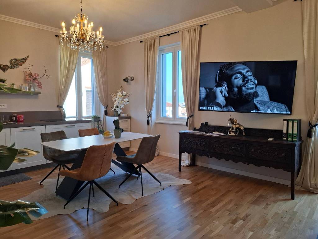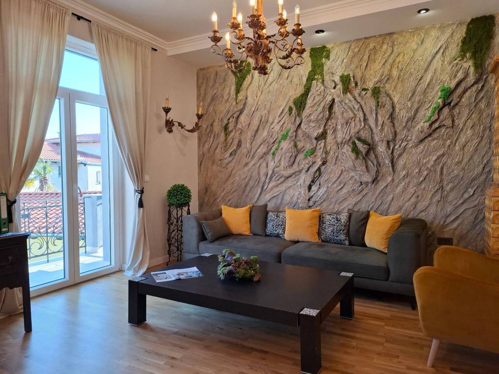 150M FROM THE SEA - UNIQUE, LUXURIOUSLY FURNISHED APARTMENT Opatija area - luxury, uniquely furnished and completely renovated ground floor apartment in a historic building, only 150m from the promenade, center and beach. The apartment has 3 bedrooms, 2 beautifully decorated bathrooms and a balcony. Very quiet part of town.