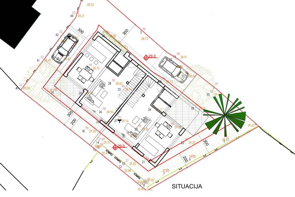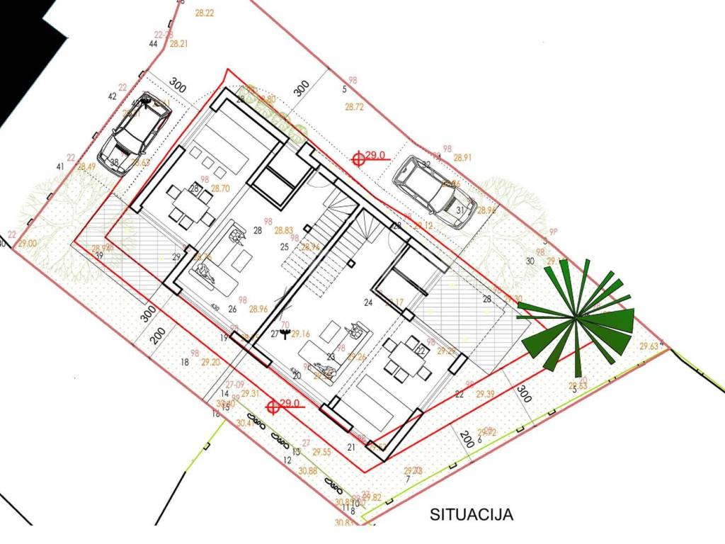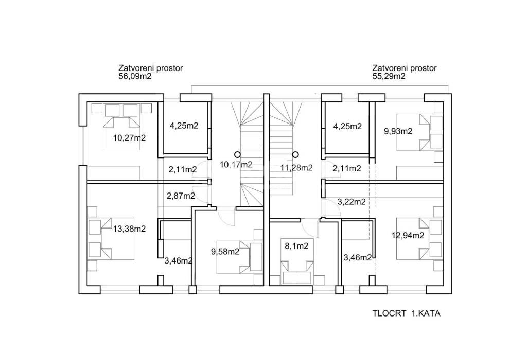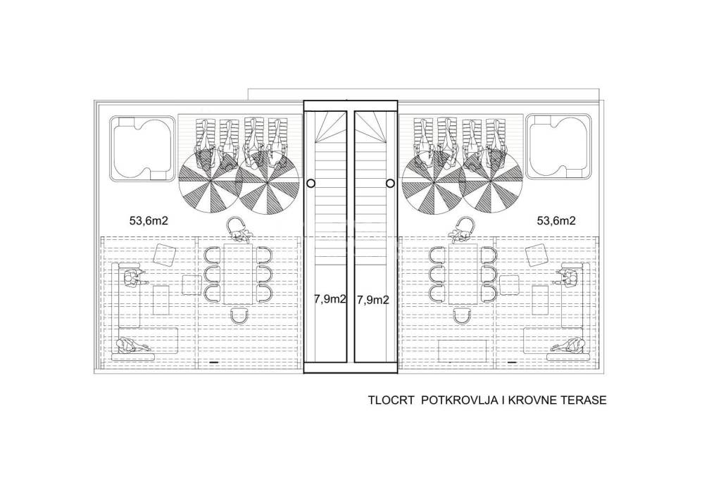 A new modern semi-detached house is offered for sale on Murter, built according to the highest contemporary construction standards and using top-quality materials. The left unit offers a total of 116.54 m² of net enclosed living space, distributed over the ground floor and first floor, complemented by attractive outdoor areas that significantly enhance the quality of living. On the ground floor there is a loggia of 5.76 m², ideal for morning coffee or evening relaxation, while a particular highlight of the property is the spacious rooftop terrace of 53.60 m², designed as a private area for socialising, sunbathing and enjoying the Mediterranean lifestyle.