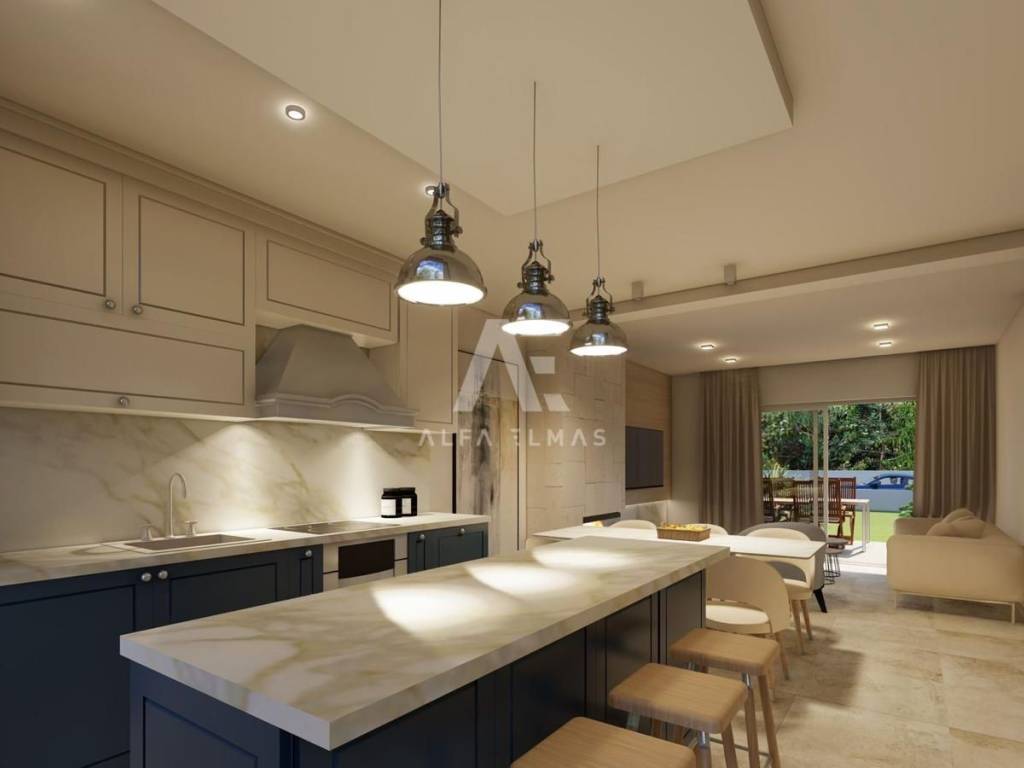The spacious living room with kitchen and dining room in an open concept creates a pleasant atmosphere for family gatherings, while the terrace of 8.61 m2 offers the possibility of enjoying the fresh air.