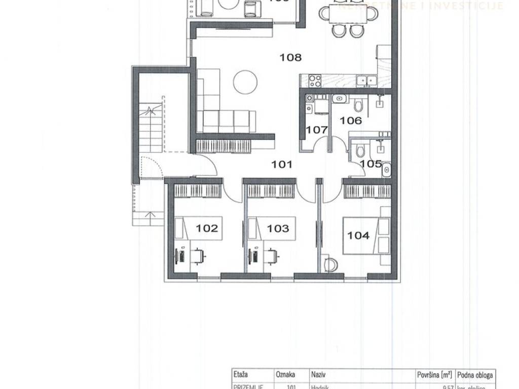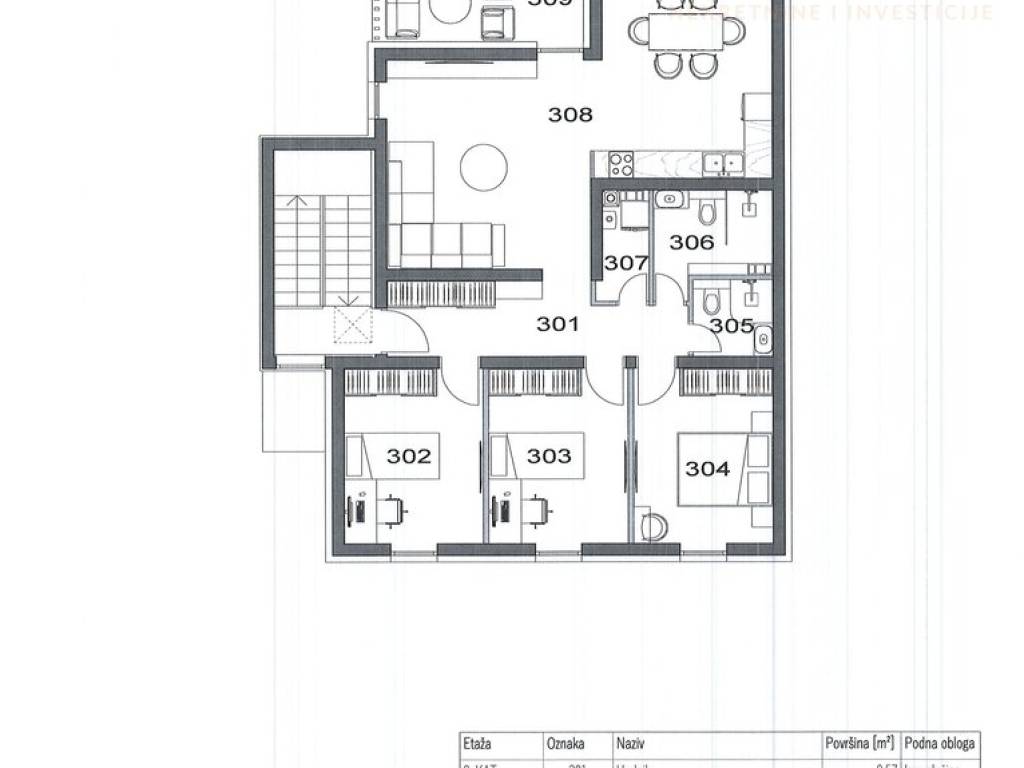 Projektnom dokumentacijom stanovi bi se sastoji od dnevnog boravka s kuhinjom i blagovaonicom, tri spavaće/dječje sobe, wc, kupaonice, ostave. hodnika i terase.