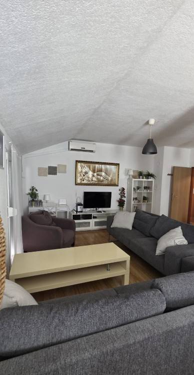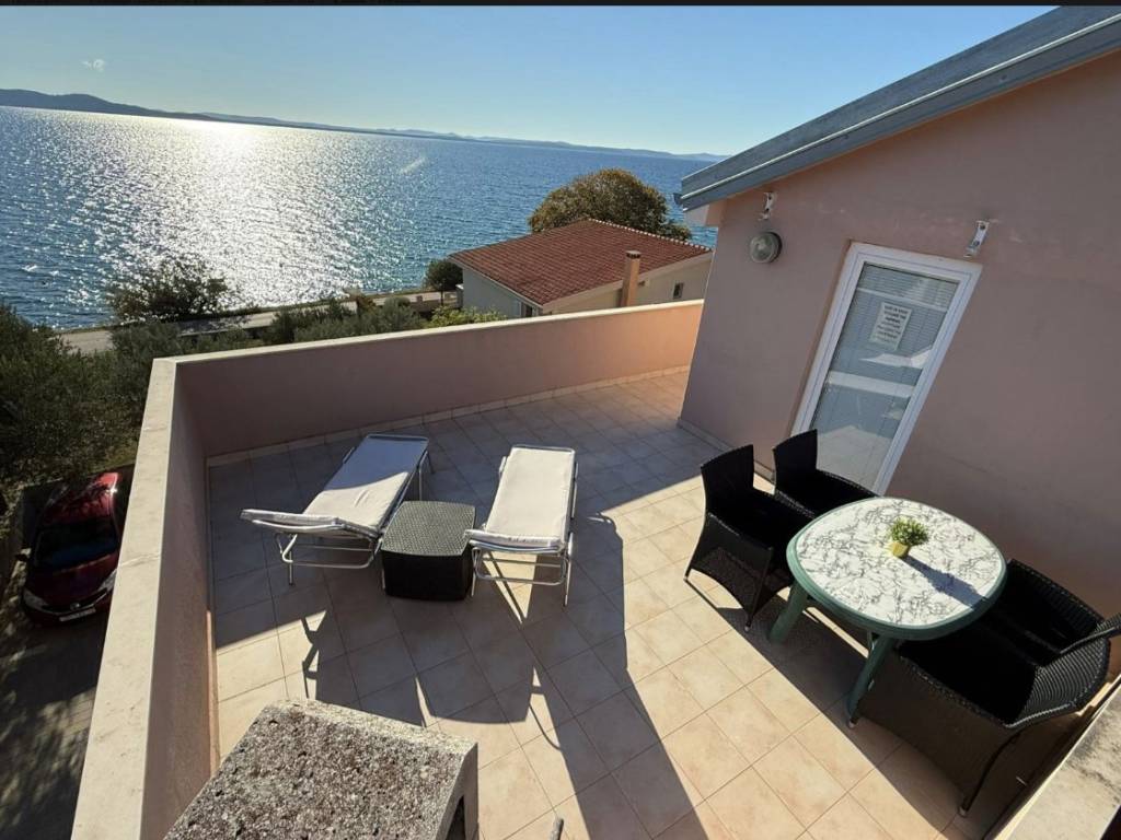 Na prodaju je penthouse u prvom redu do mora, smješten u mirnom i atraktivnom dijelu Kožina, svega nekoliko koraka od plaže, površine 81,20 m2, brutto 123 m2 ( sa terasom). Apartman se sastoji od: -dvije udobne spavaće sobe, -prostrane kupaonice s kadom, -velikog, svijetlog dnevnog boravka povezanog s kuhinjom i blagovaonicom, - velike terase s koje se pruža prekrasan, otvoren pogled na more - ostave i hodnika Pripada mu jedno parkirno mjesto. Apartman odiše svjetlom i prostranošću, a lokacija pruža potpuni mir i privatnost. U neposrednoj blizini nalaze se trgovine, restorani i šetnice uz more, dok je Zadar udaljen svega 10 minuta vožnje. U blizini su i poznate turističke atrakcije poput Morskih orgulja, Pozdrava Suncu, Nina i Nacionalnog parka Kornati, što ovu nekretninu čini izvrsnim izborom za stanovanje ili investiciju. Apartman ima dva klima uređaja. Odlična prilika za iznajmljivanje u turizmu. Potpuno opremljen i odmah useljiv. Za više informacija kontaktirajte agenciju.