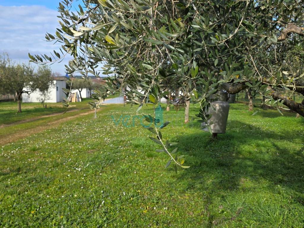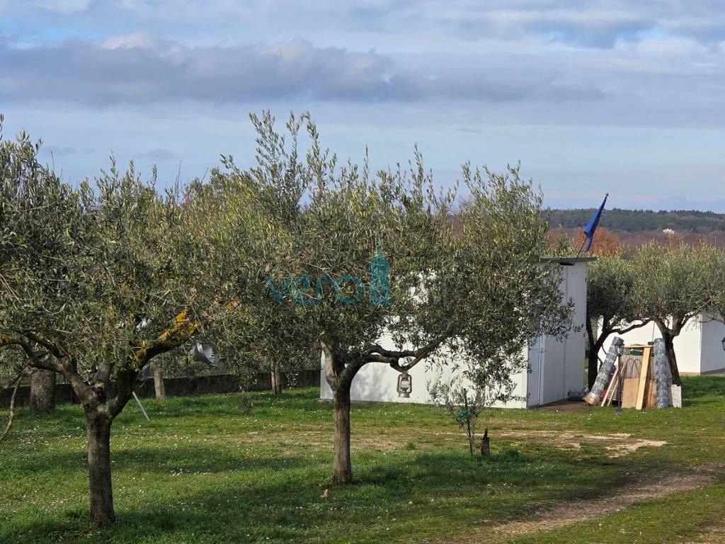 Istra, Umag, okolica, poljoprivredno zemljište sa maslinikom i objektima za povremeni boravak. Ova nekretnina je idealna za bijeg od užurbanog života i uživanje u okruženju prirode. Na dijelu zemljišta je šest manjih objekata koji se sastoje od kuhinje, dnevnog prostora, prostora sa ležajevima, prostora sa kupaonicom te spremišta. Objekti su legalizirani. Na zemljištu je priključak za struju.