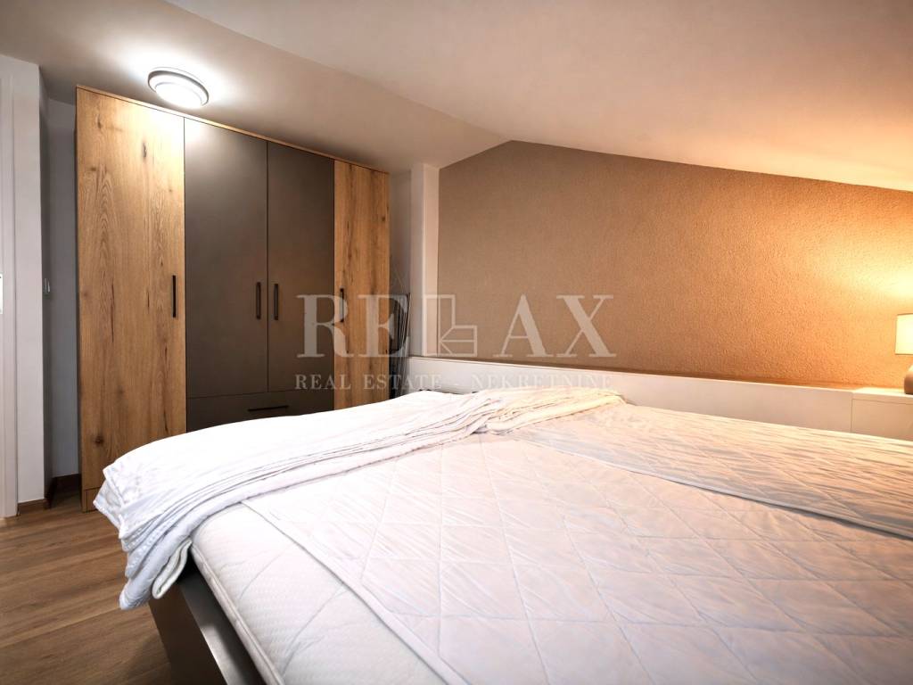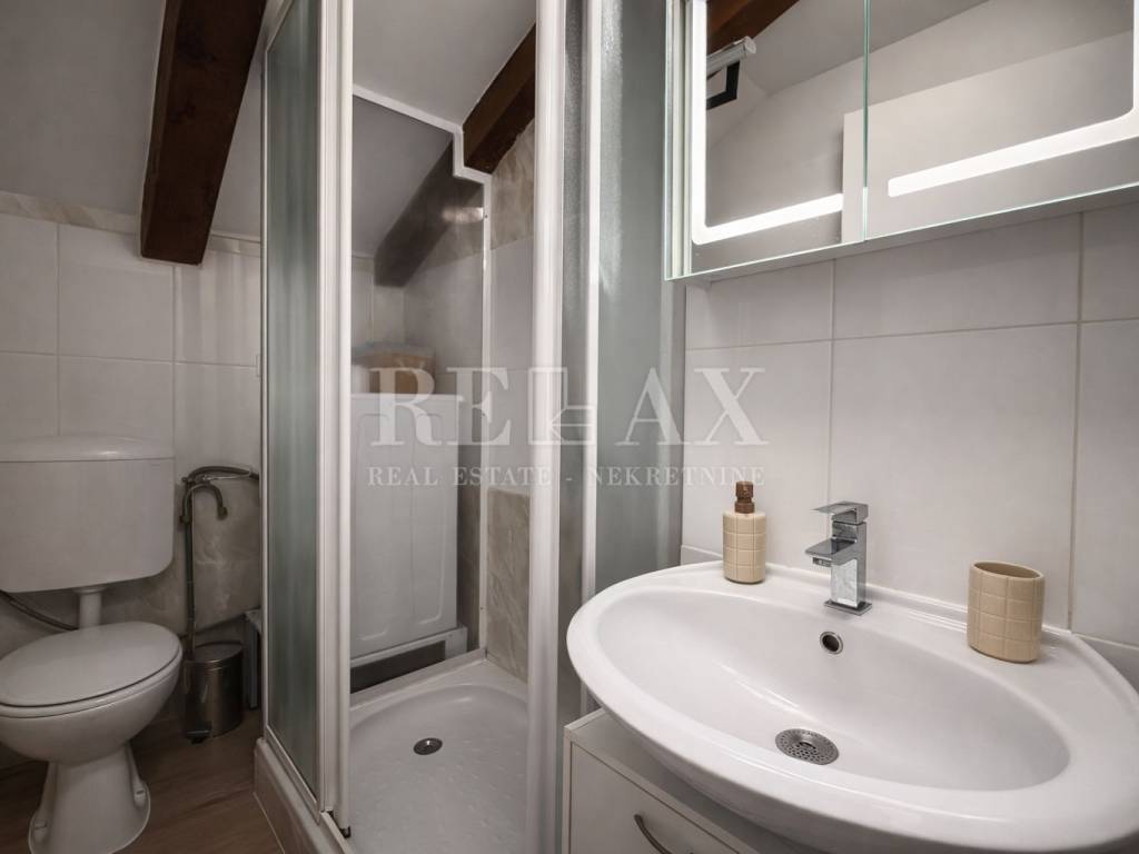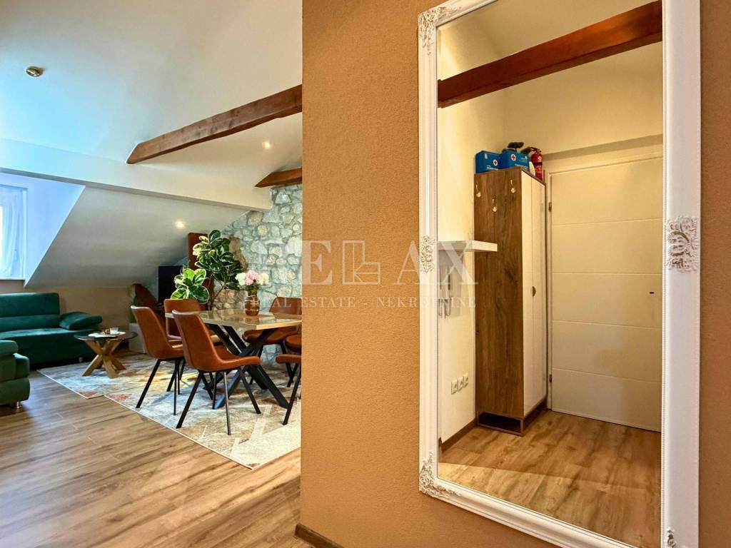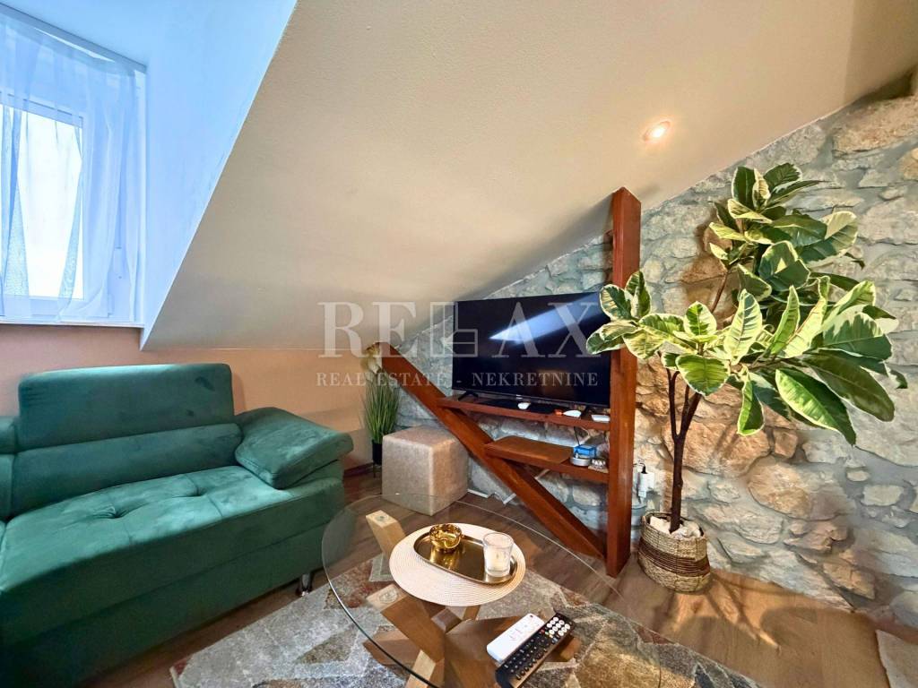 In an excellent location in the center of Crikvenica, just 170 meters from the sea, this one-bedroom apartment is situated in the attic of a building. With a total area of 42.39 m², the apartment consists of an entrance hallway, a living room with a kitchen and dining area, one bedroom, and a bathroom.