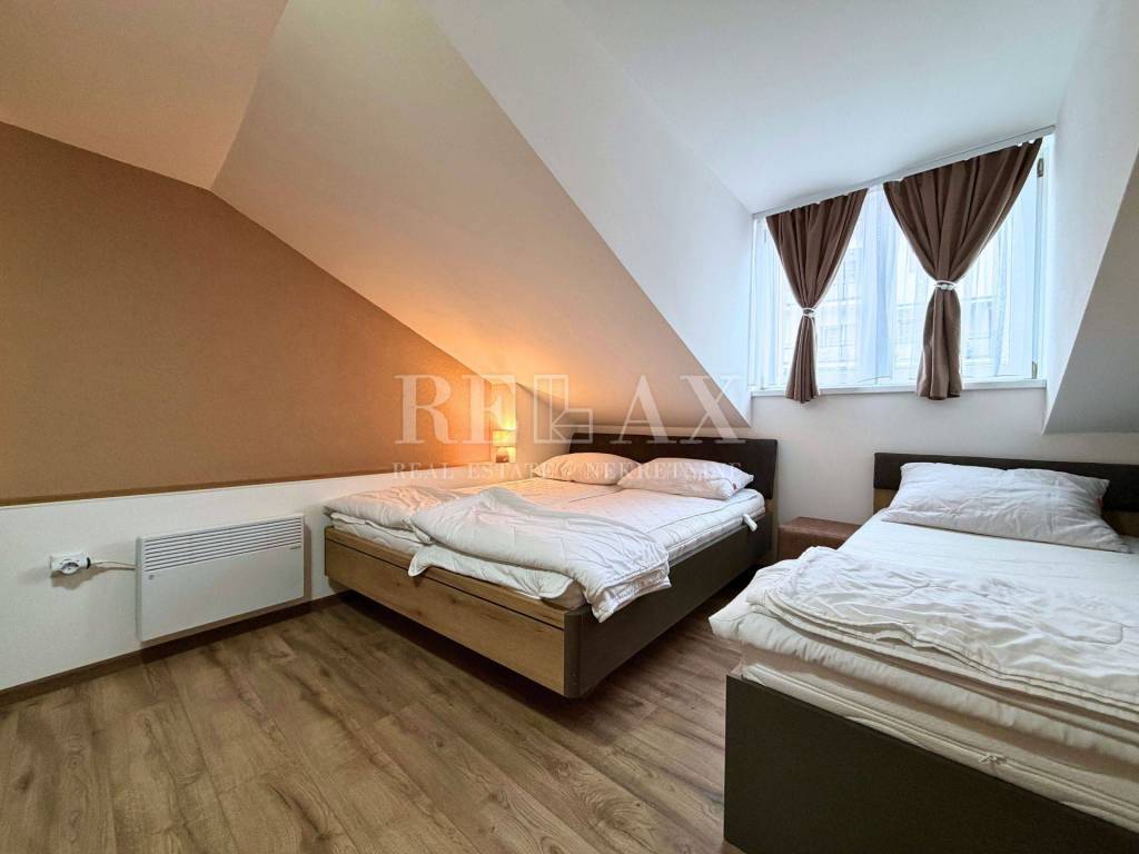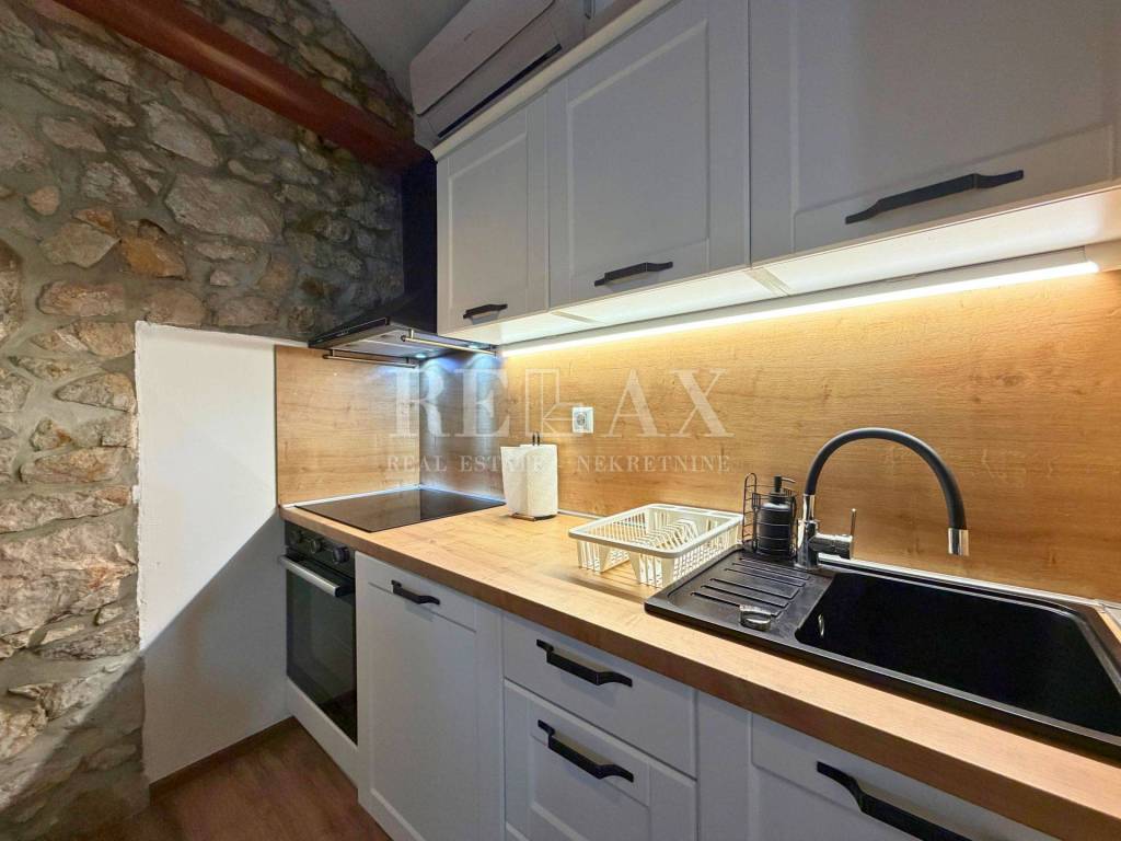 The apartment was renovated in 2025, with all key interior elements thoroughly updated. A new kitchen with appliances was installed, new flooring was laid, the bathroom was renovated, and the apartment was furnished with new furniture. It is equipped with air conditioning, ensuring a comfortable temperature throughout the year.