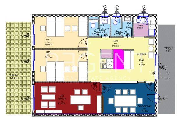 Poslovni prostor smješten je u suterenu zgrade unutar modernog projekta Sunny Cliff Residence, na atraktivnoj lokaciji uz more. Zahvaljujući organiziranom rasporedu, dobroj pristupačnosti i funkcionalnosti, prostor je prikladan za uredske djelatnosti, sjedište tvrtke, administrativne i druge tihe uslužne djelatnosti. Ukupna zatvorena površina iznosi 92,52 m². Prostor se sastoji od ulaznog predprostora s lobbyjem, hodnika, dvije sanitarne jedinice, sobe za sastanke, dva ureda, ureda direktora, tajnice, čajne kuhinje te spremišta. Raspored omogućuje jasno odvajanje radnih zona, upravljačkog dijela i zajedničkih prostora, što osigurava kvalitetne uvjete za svakodnevno poslovanje. Uz zatvoreni dio, prostoru pripadaju i otvorene površine ukupne obračunske vrijednosti 99,44 m². One uključuju zeleni krov površine 19,30 m² te ulazni prostor i prolaz površine 12,24 m², koji dodatno doprinose reprezentativnosti i funkcionalnosti poslovnog prostora. Ulaz u prostor omogućen je direktno s vanjske strane zgrade, što osigurava jednostavan pristup zaposlenicima i strankama. Projekt se gradi prema visokim energetskim standardima, a okoliš će biti uređen mediteranskom hortikulturom. U sklopu naselja planiran je i dječji park, što može biti dodatna vrijednost za djelatnosti usmjerene prema lokalnoj zajednici. Garažno parkirno mjesto dostupno je uz nadoplatu od 30.000 €. Završetak gradnje predviđen je za ljeto 2027. godine. Plaćanje je moguće po fazama gradnje ili putem kredita. Za dodatne informacije i dogovor oko razgledavanja, stojimo na raspolaganju.