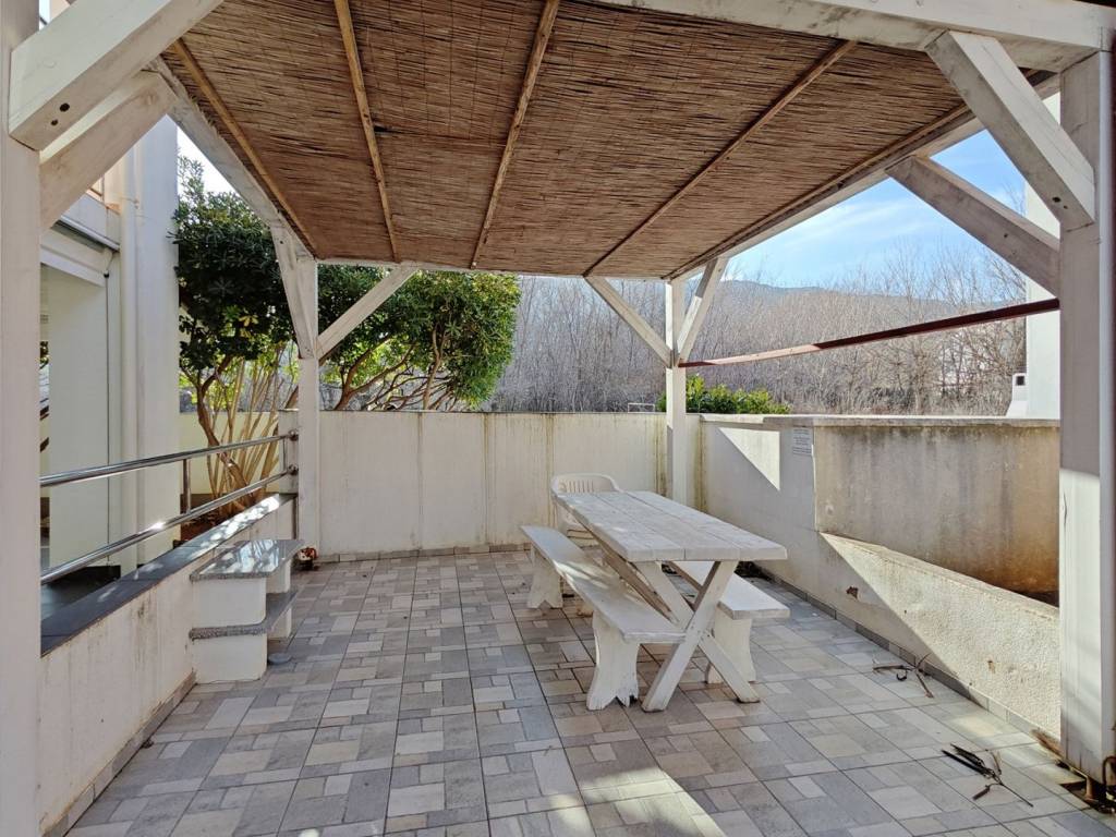 The upper floor consists of one bedroom, a bathroom and access to a large, uncovered terrace with a sea view. The terrace is one of the key advantages of this property and provides an ideal space for relaxation and enjoyment throughout the day.
