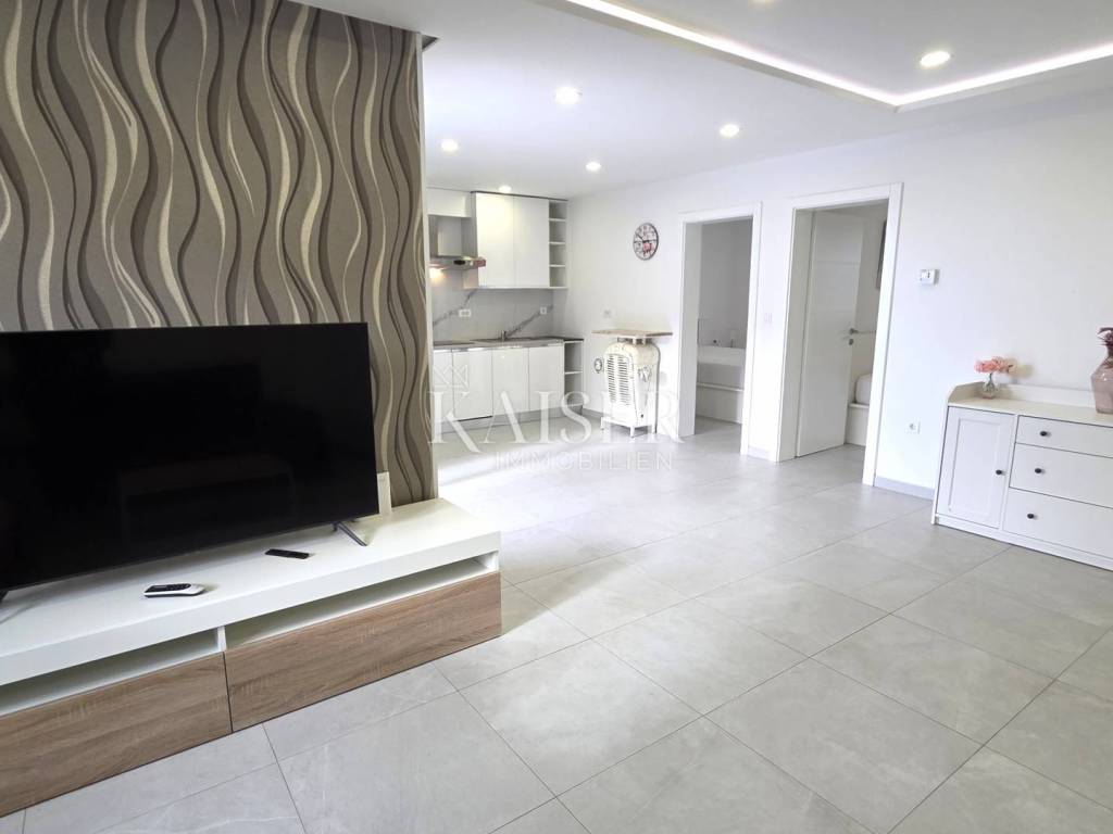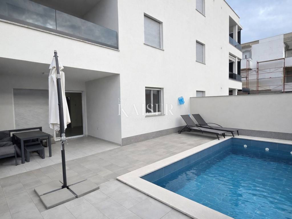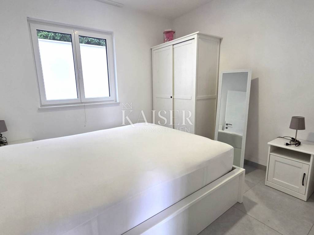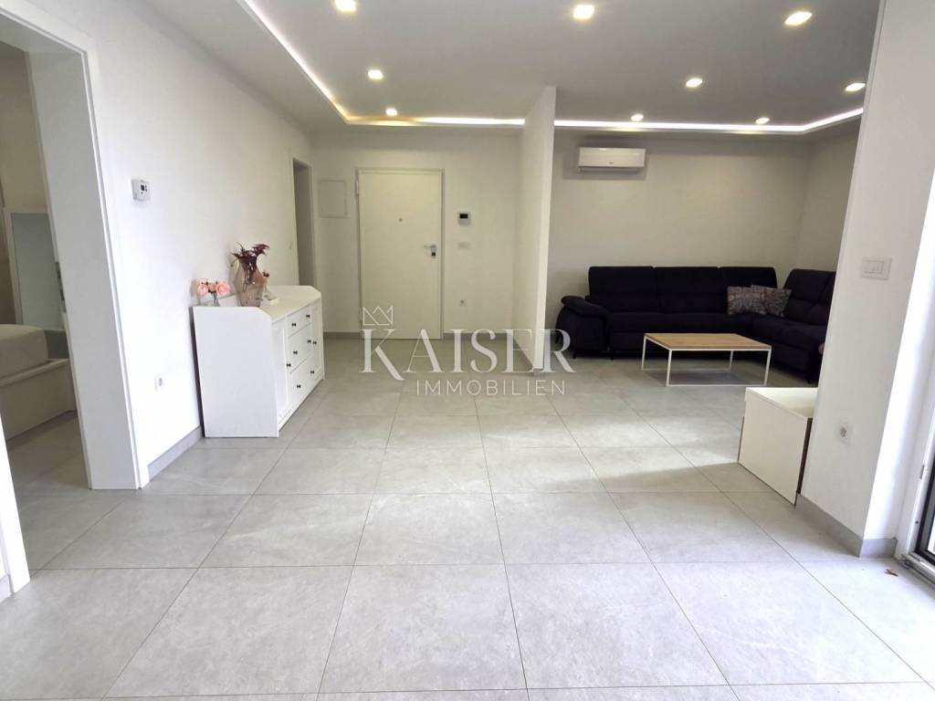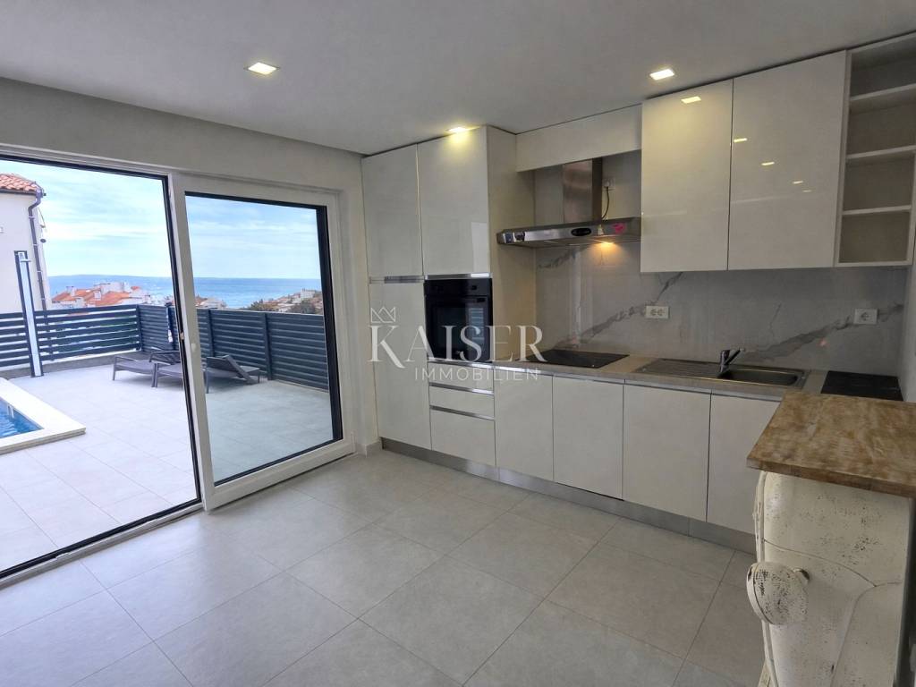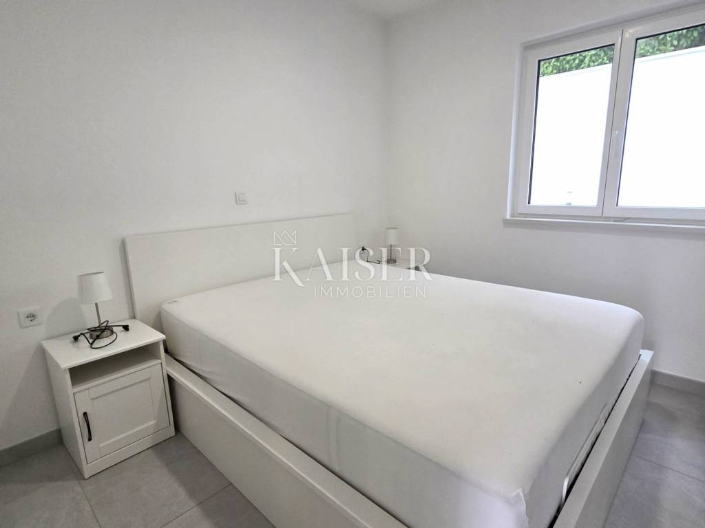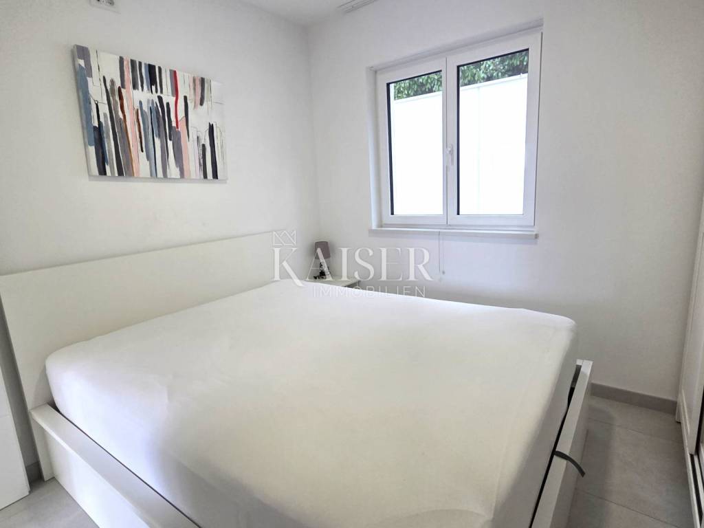 Kaiser Immobilien presents a two-bedroom apartment on the ground floor of a modern new building with its own swimming pool, located in a quiet part of Crikvenica, in the immediate vicinity of the sea. The apartment is located in a newly built building with a total of six residential units and offers a high level of privacy and comfort.