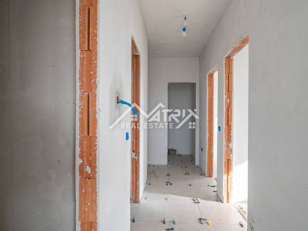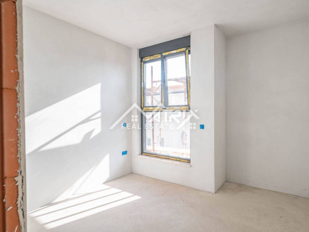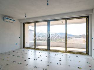 Heating and cooling are provided via a MultiSplit system, while underfloor heating is installed in the bathroom and kitchen. Flooring consists of Italian ceramic tiles throughout the apartment, except in the bedrooms, where wooden flooring is planned.
