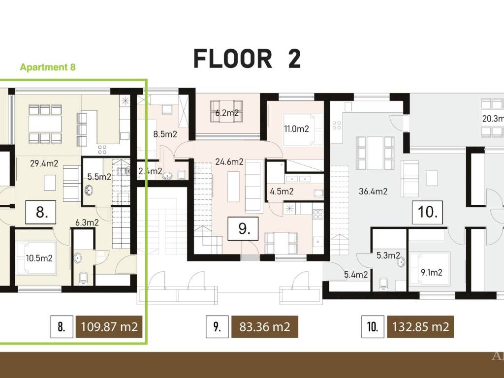 - Obračunska (neto) površina: 109,8 m2