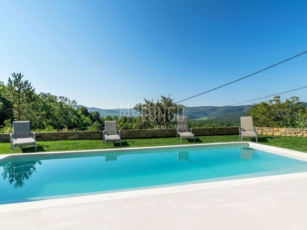 Not far from that magical town, in the very heart of Istria, in the valley of the Mirna river at the foot of Motovun, there is a designer stone house for sale with a swimming pool.