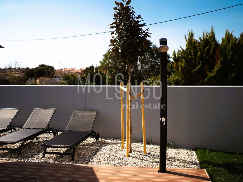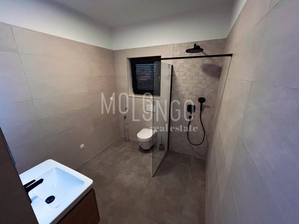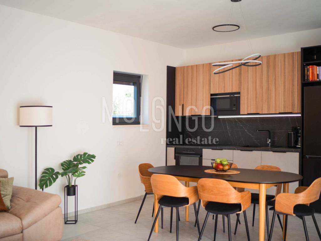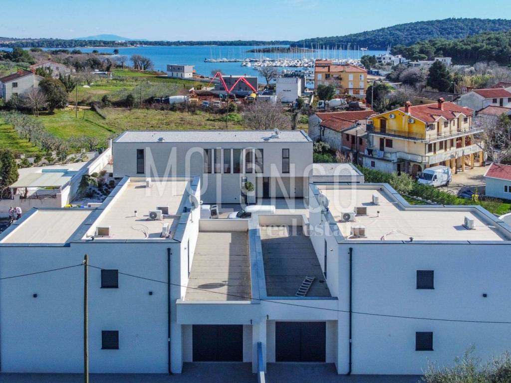 This modern semi-detached villa with a swimming pool is located in a quiet place near Medulin, just 200 meters from the sea. Quality built, the house covers a total net area of ​​188.19 m2, distributed over the ground floor and first floor.