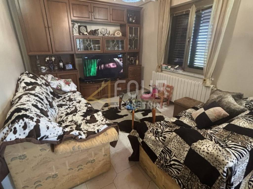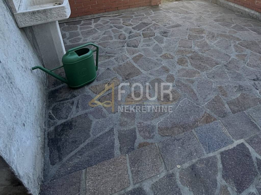 In the basement there is a tavern of about 60 m² and a one-bedroom apartment with a living room opening onto a spacious terrace. The ground floor features a three-bedroom apartment of 90 m² with a living room, two bathrooms, and a terrace, while the first floor houses a two-bedroom apartment with a living room, kitchen, bathroom, and terrace of the same size. Heating is via fuel oil, and aluminium joinery is installed. The house has a garage and four parking spaces.
