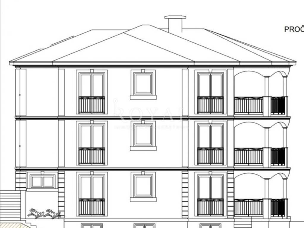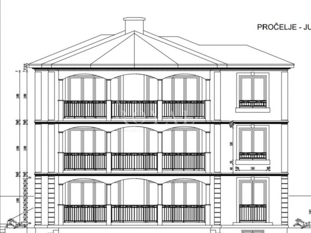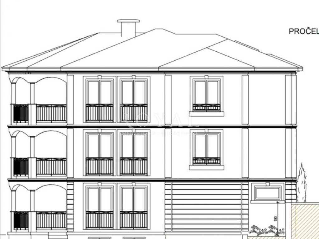 Povile, građevinsko zemljište na 50 metara od mora, građevinska dozvola i projekat za 6 apartmana s bazenom, 3 apartmana po 62,18 m2 i 3 apartmana 66,63 m2, plaćen komunalni i vodni.