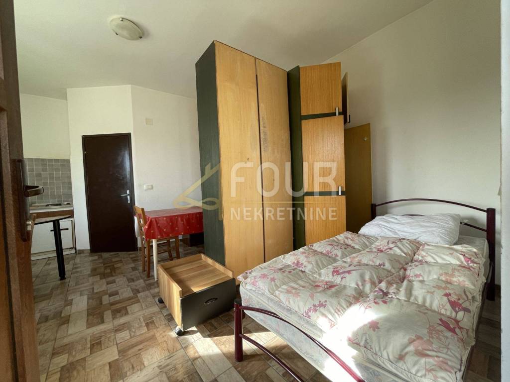 Studio apartment for rent in Saršoni, surface area 21m2. It is rented furnished and has two beds. There are two parking spaces for use. Monthly cleaning is included in the rental price.