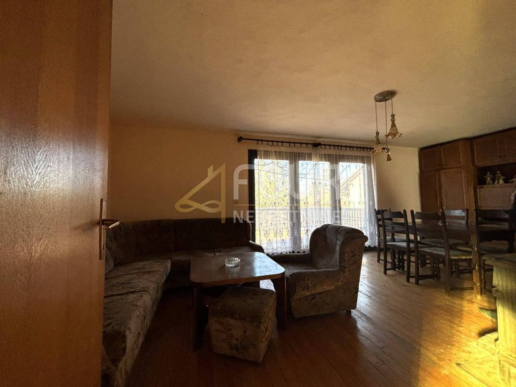 The property is being sold fully furnished, and the heating is wood-fired. The house comes with a garage, an additional plot of 590m2, a yard house and an outbuilding.