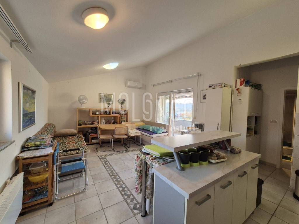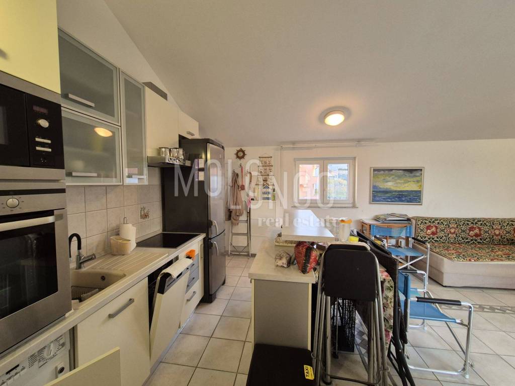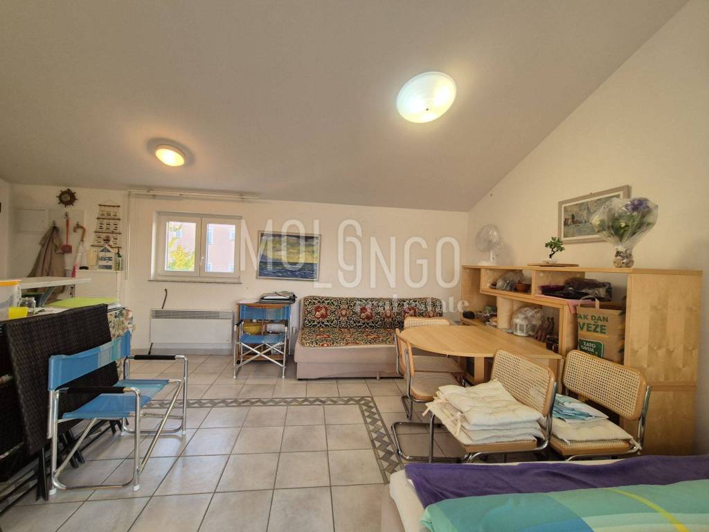 KRK, SOLINE, we are selling a one-room apartment of 47.90 m2, on the second floor of a residential building, in a great location, only 100 m from the beach. The apartment is furnished and sold as is. The apartment consists of a kitchen with a living room and a dining room that leads to a loggia with a beautiful view of the sea, a hallway, a bedroom and a bathroom. The apartment has a storage room in the basement of 2.75 m2 and a covered parking space.