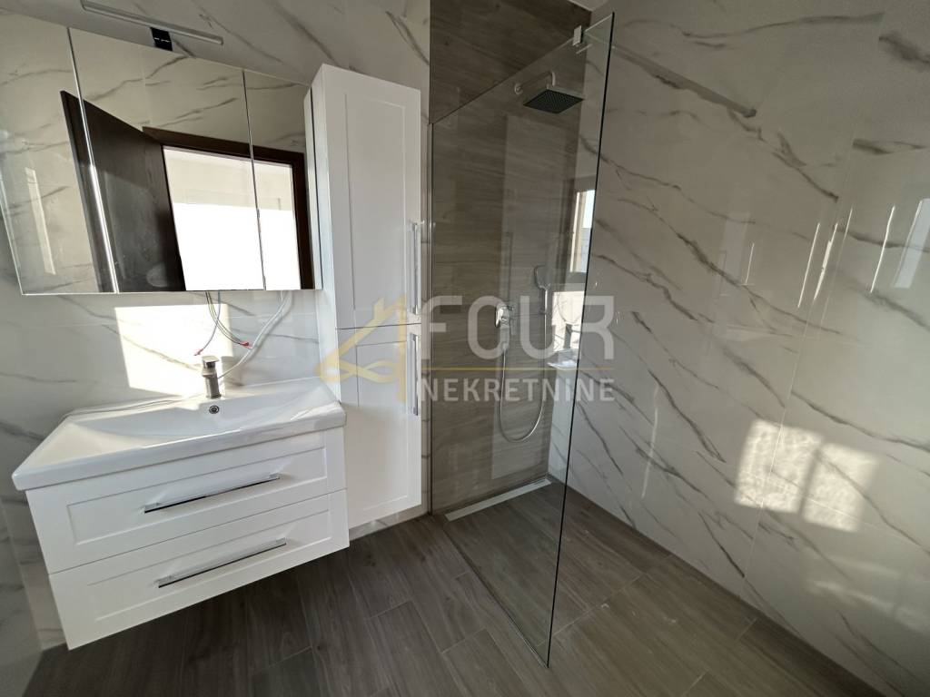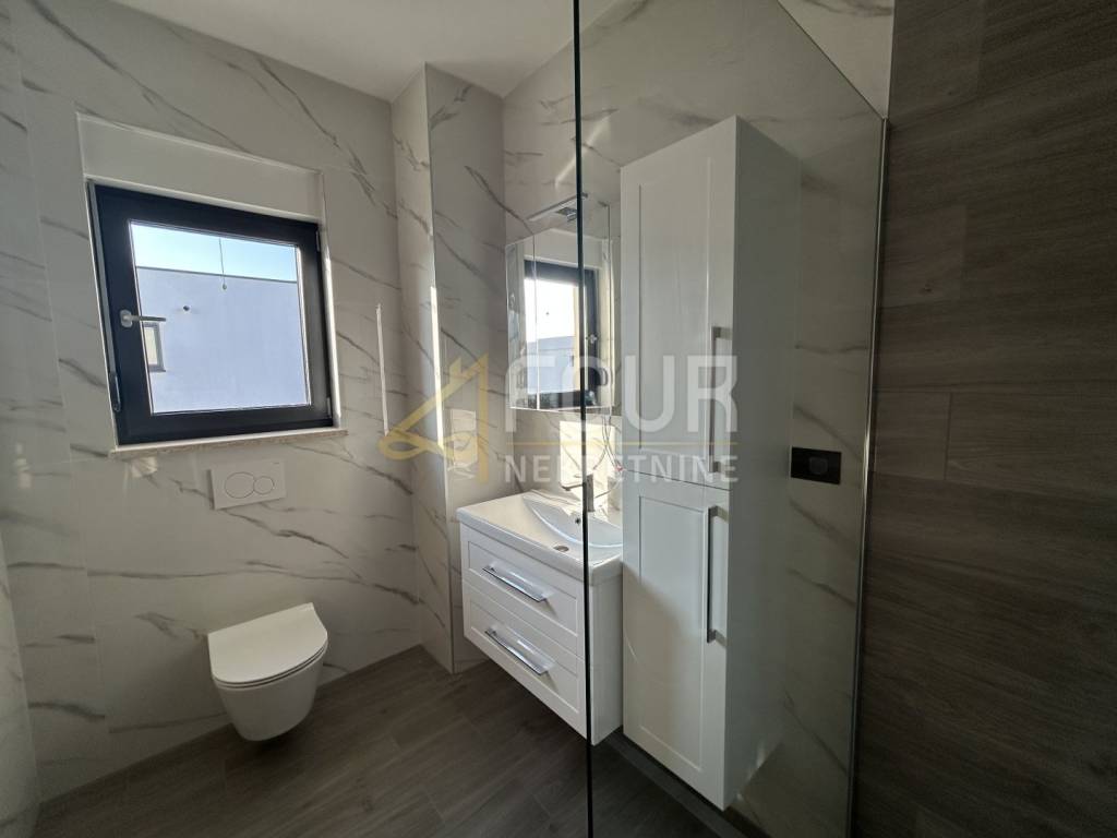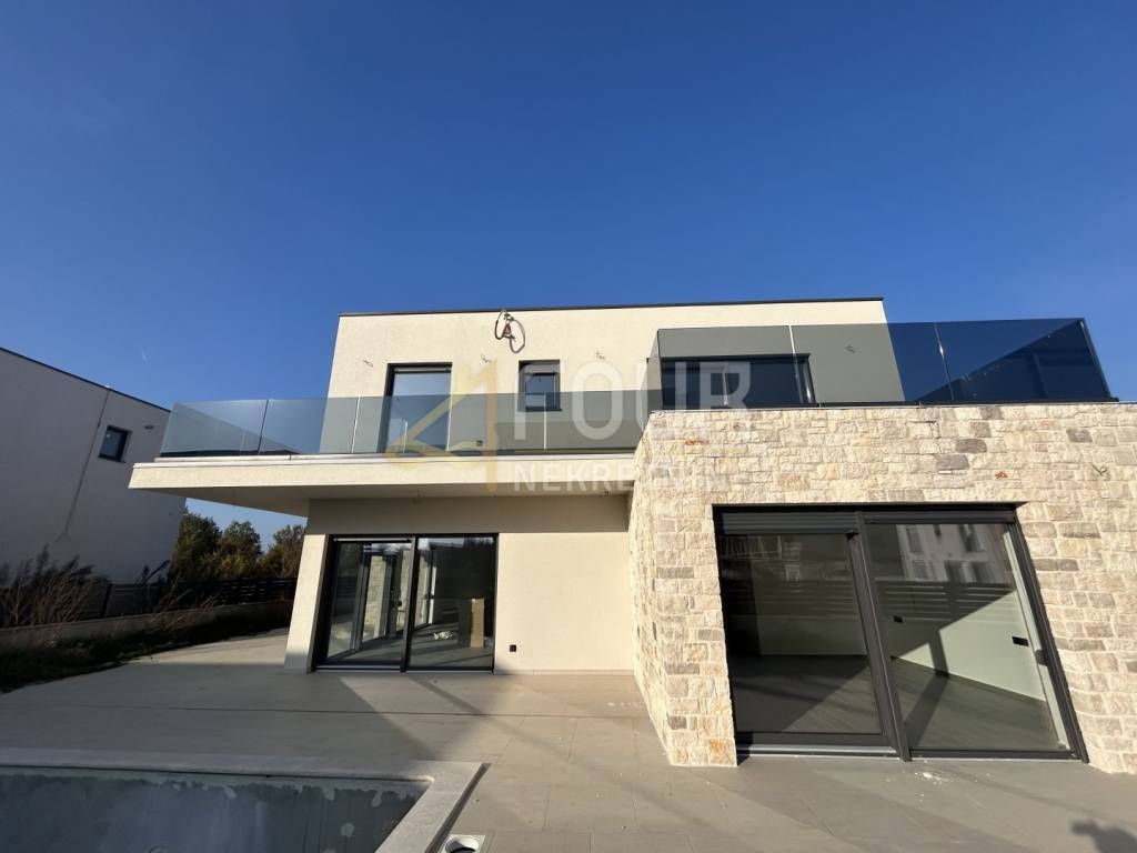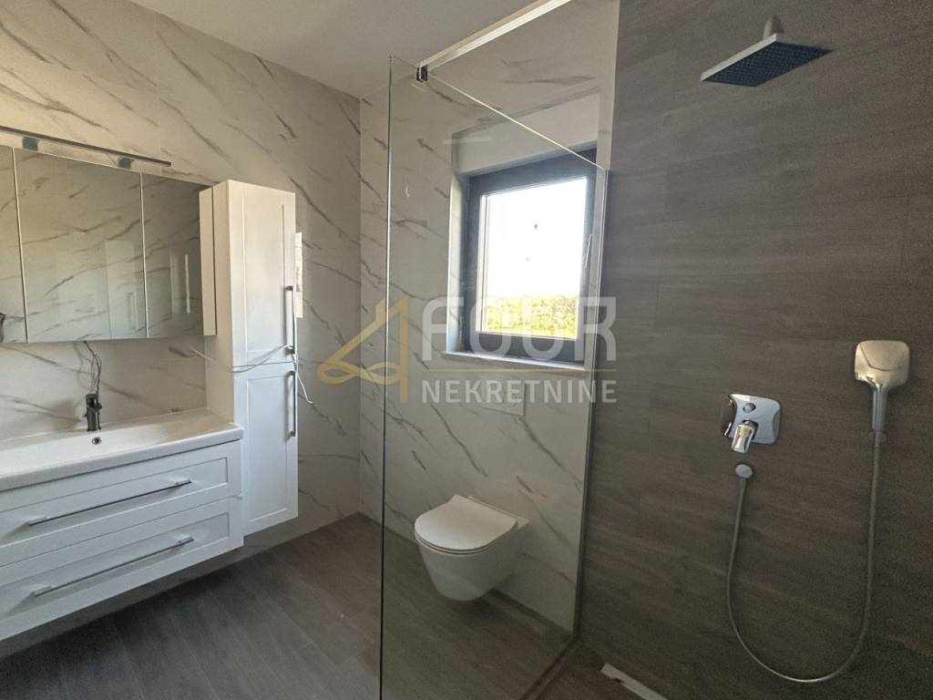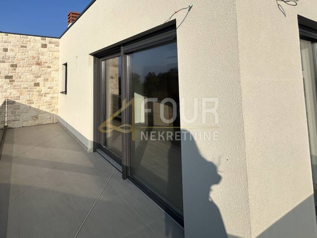 It is of newer construction and features modern design, underfloor heating, air conditioning, heat pump, PVC joinery, and preparation for solar panels.