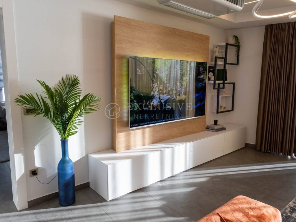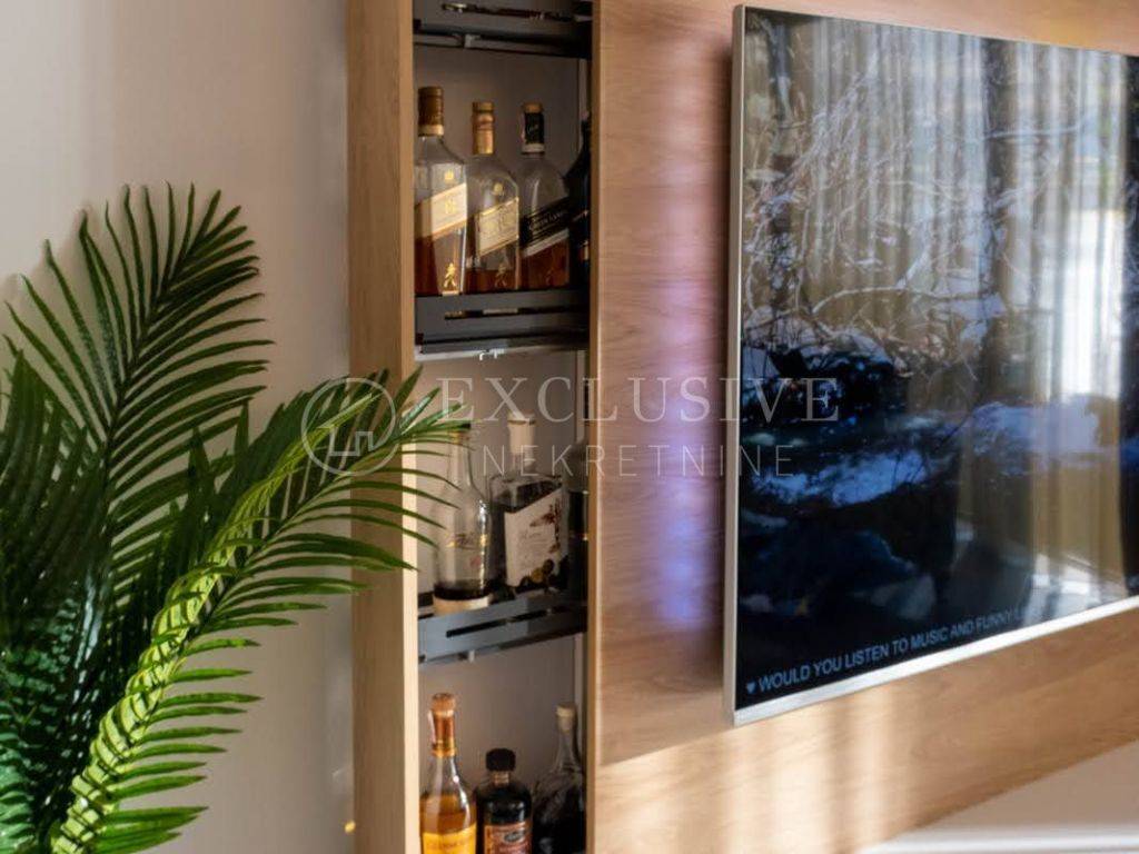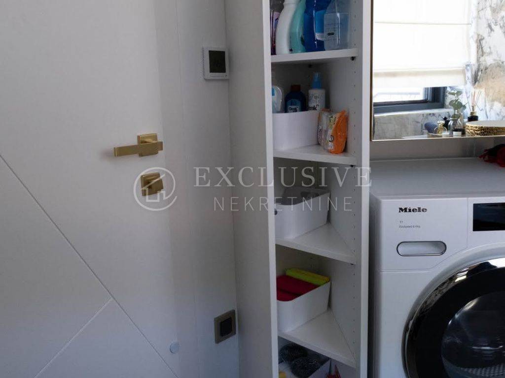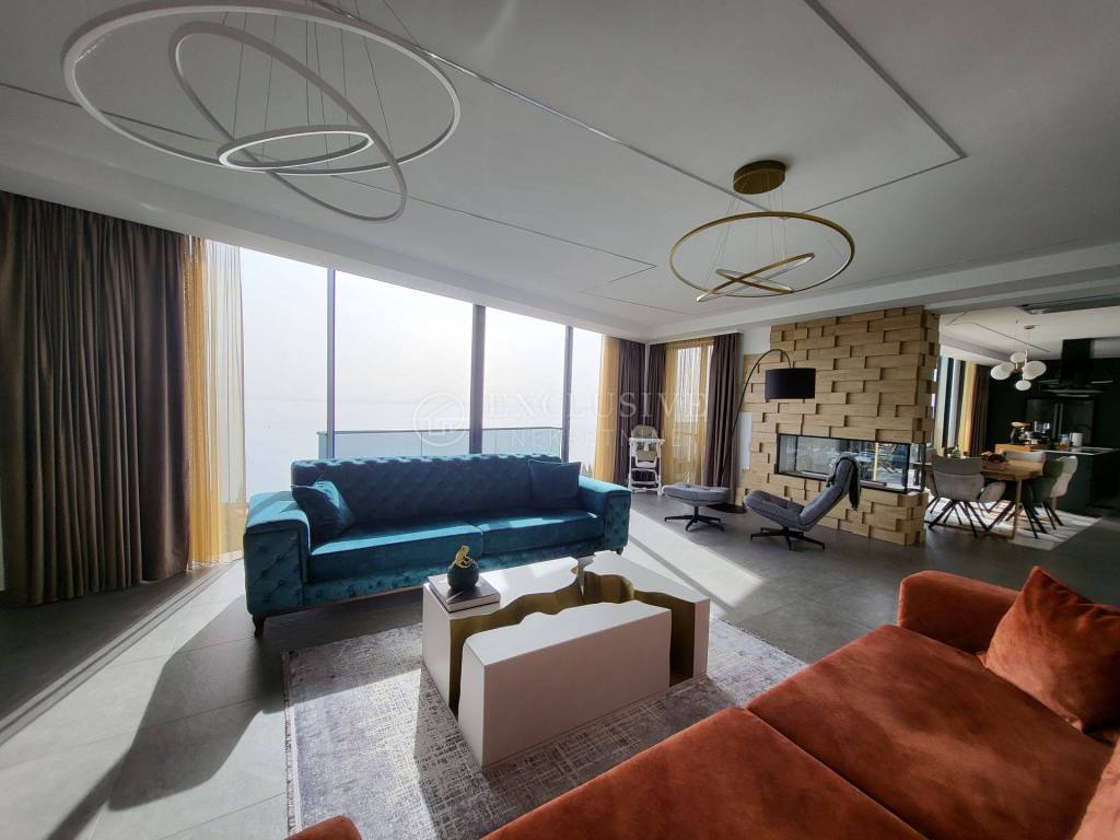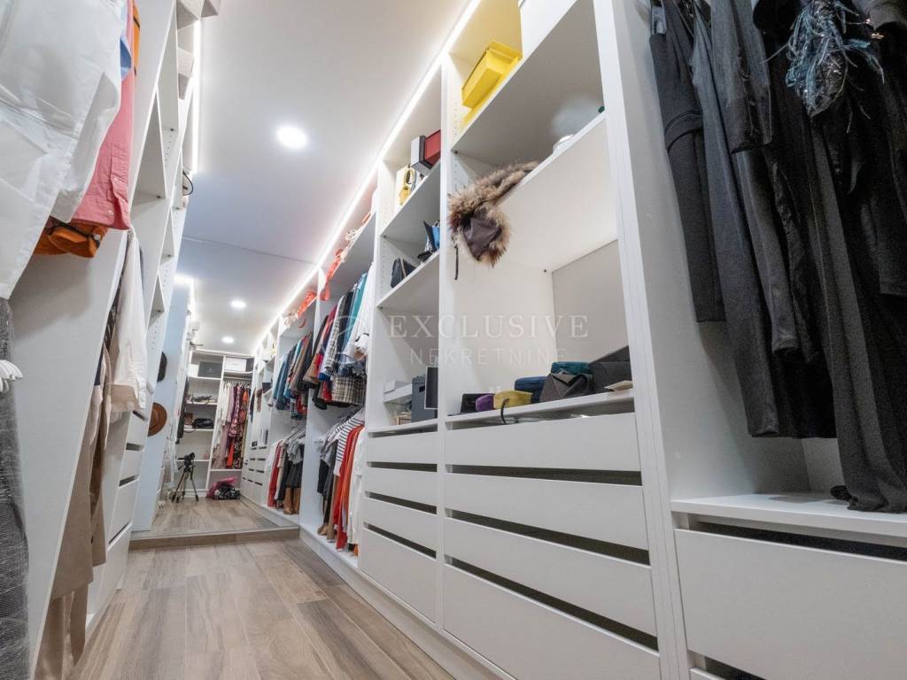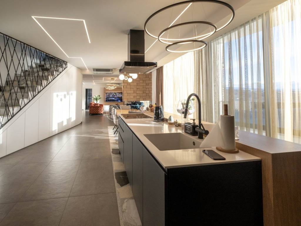 This unique two-story apartment with a total area of 227m2 with all terraces, enchanted already at the very entrance to the lower floor, where there is a fantastic open space concept living room with kitchen and dining room, a bedroom with a bathroom, a laundry room with a guest toilet, and a luxurious covered terrace with high ceilings.