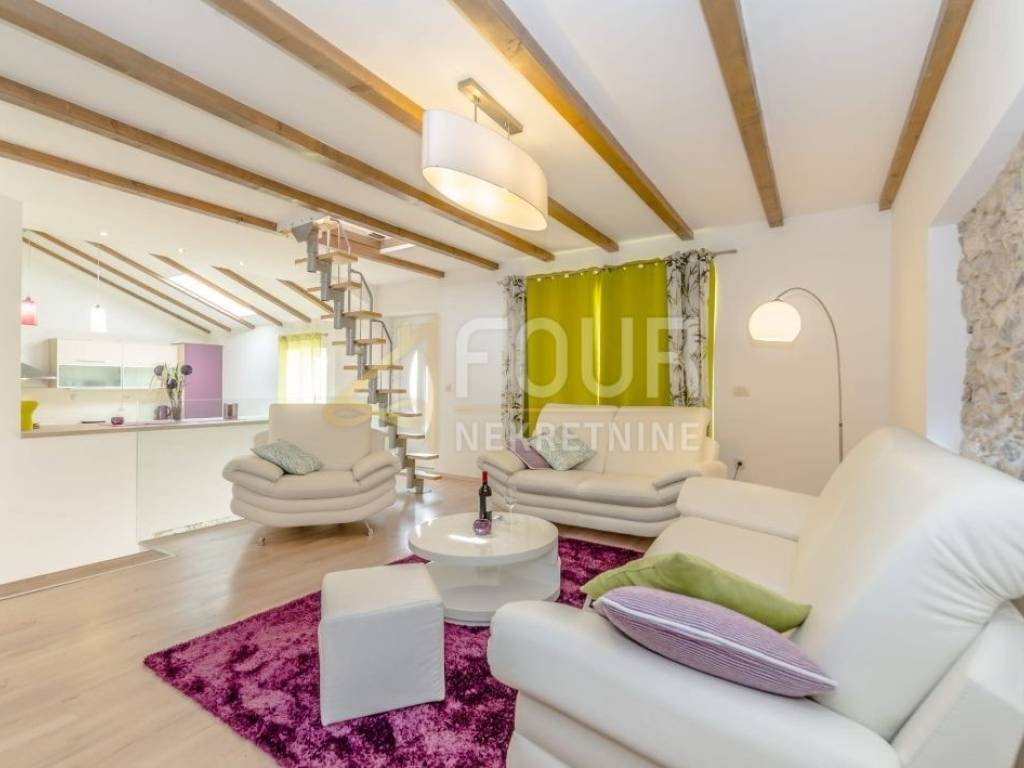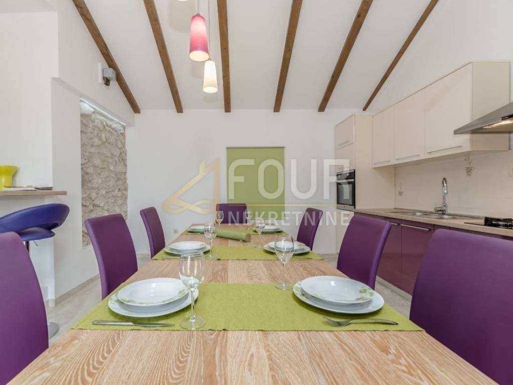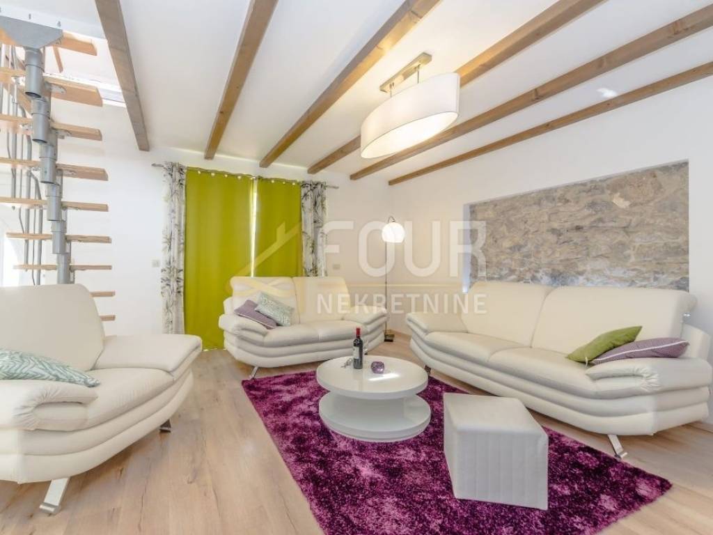 A beautifully decorated stone house with a swimming pool and a beautiful view of the sea is for sale, located in the vicinity of Zadar.