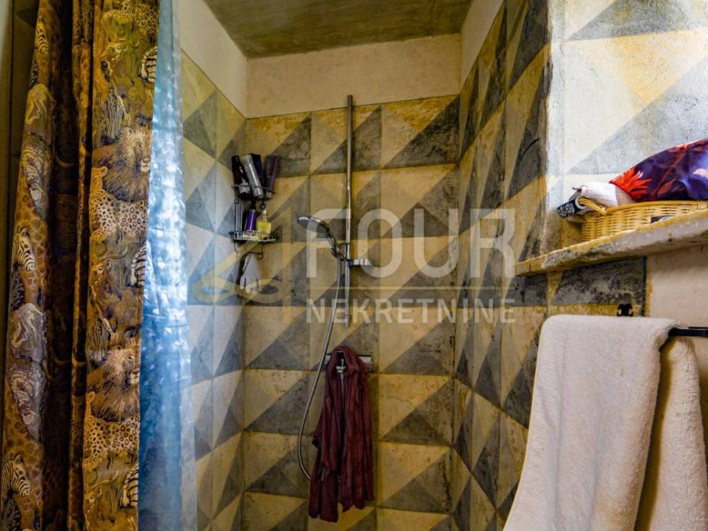 On the ground floor there is an extremely comfortable living room, kitchen, bathroom, lobby and a staircase that leads to a high attic where there is a bedroom, bathroom and library.