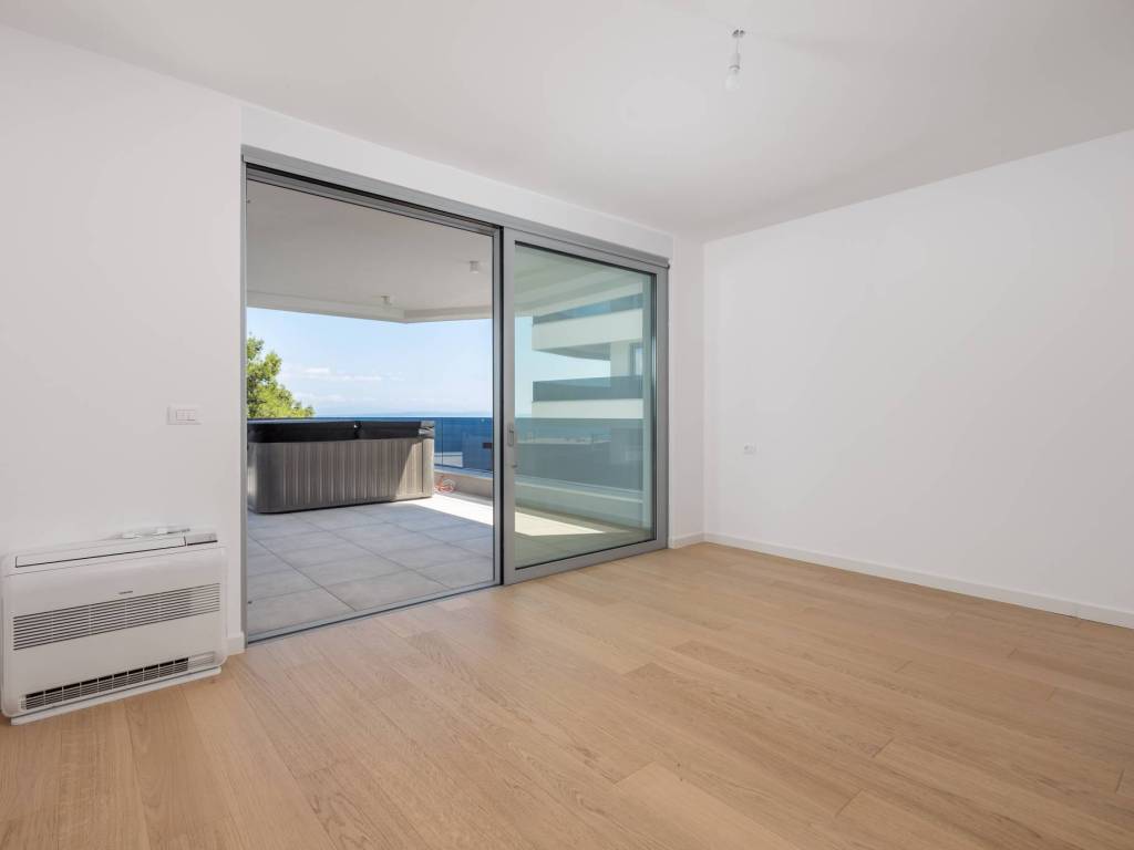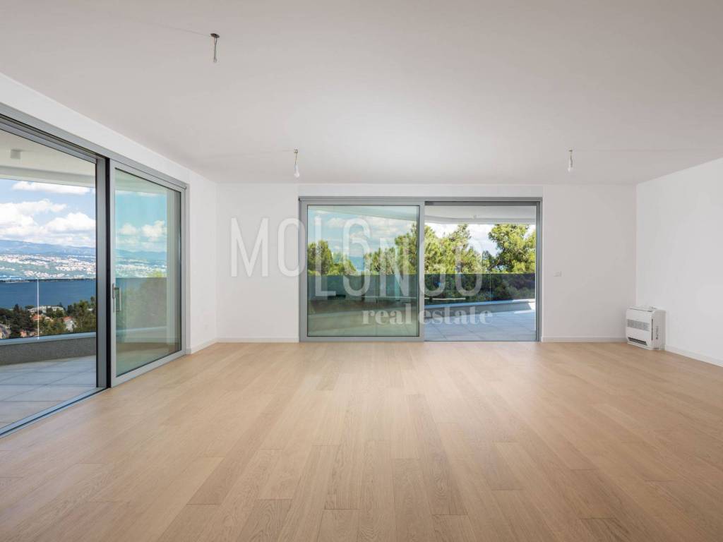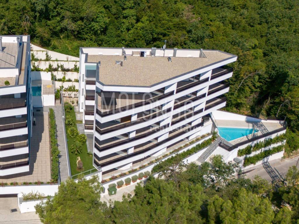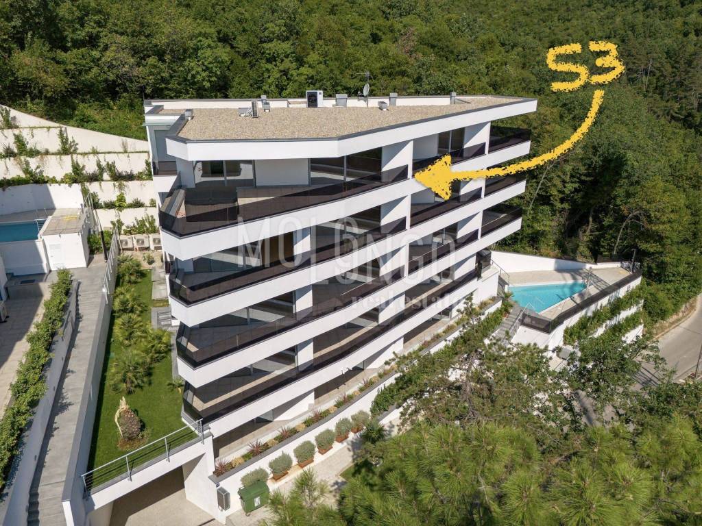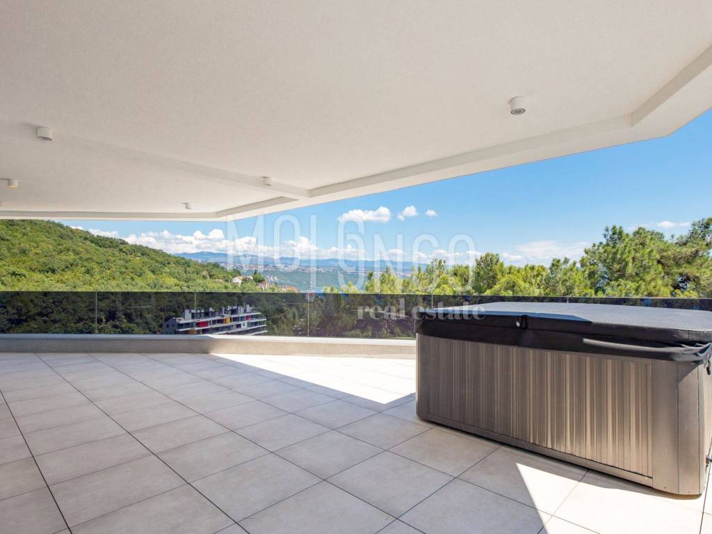 A luxury penthouse for sale in a new building with a swimming pool, an elevator and an underground garage in the heart of Opatija, located in an ideal location with a view of the sea.