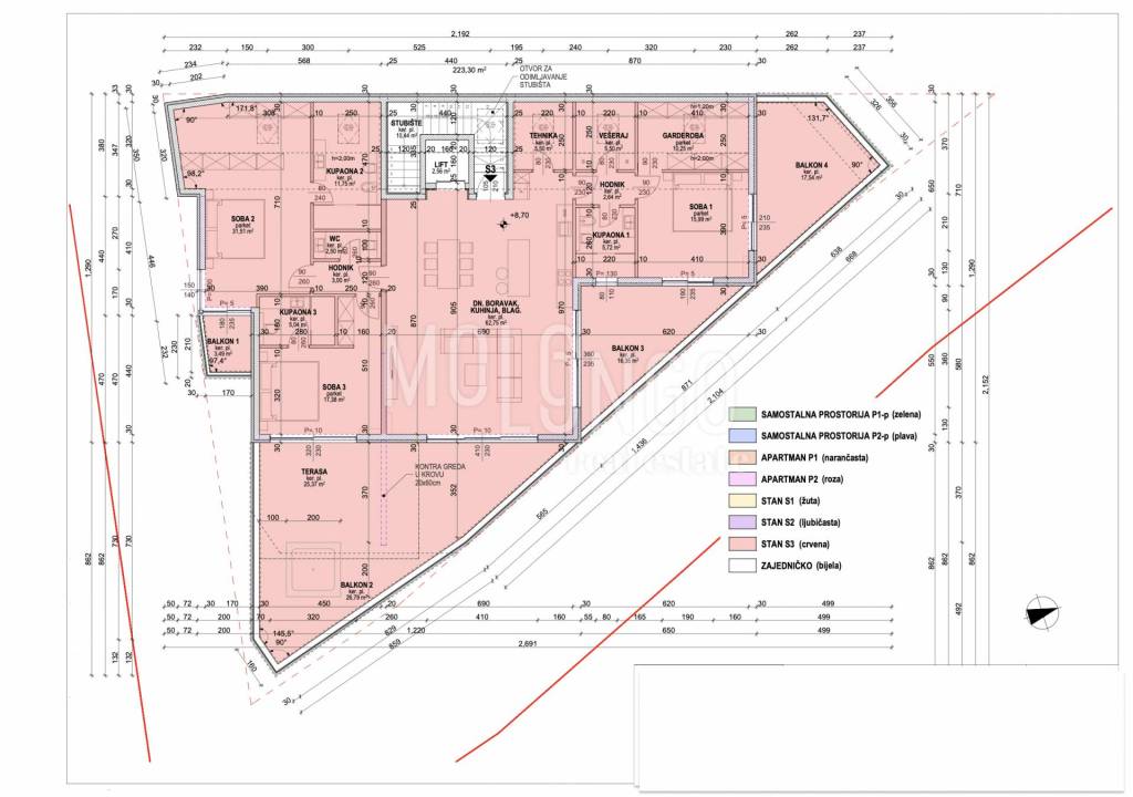 • terrace and 4 balconies total area: 89.54 m2