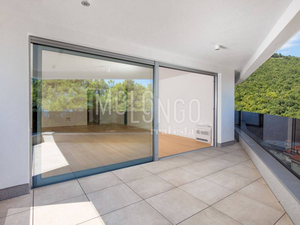 A luxury apartment for sale in a new building with a swimming pool, an elevator and an underground garage in the heart of Opatija, located in an ideal location with a view of the sea.