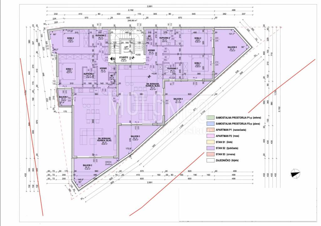 • 5 balconies total area: 64.16 m2
