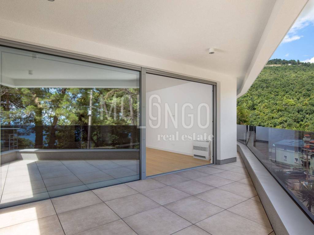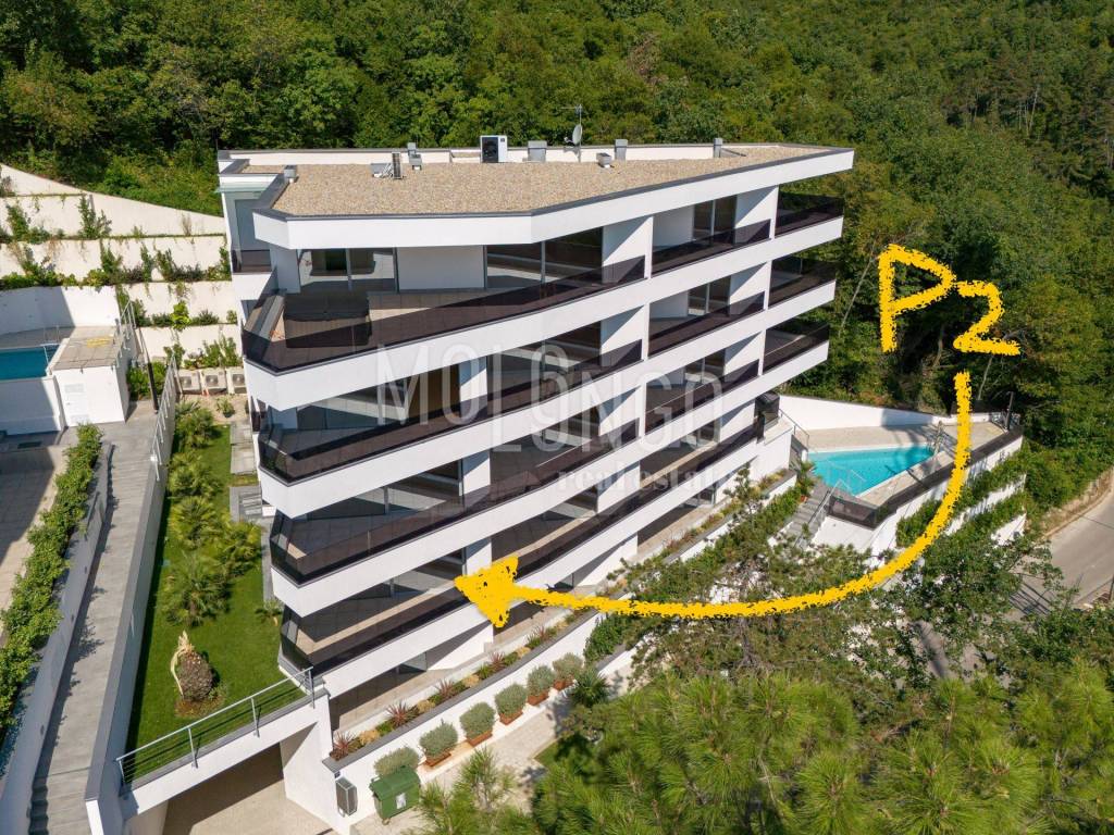 For sale: a luxury 2 bedroom apartment in a new building with a swimming pool, elevator and underground garage in the heart of Opatija, located in an ideal location with a view of the sea.