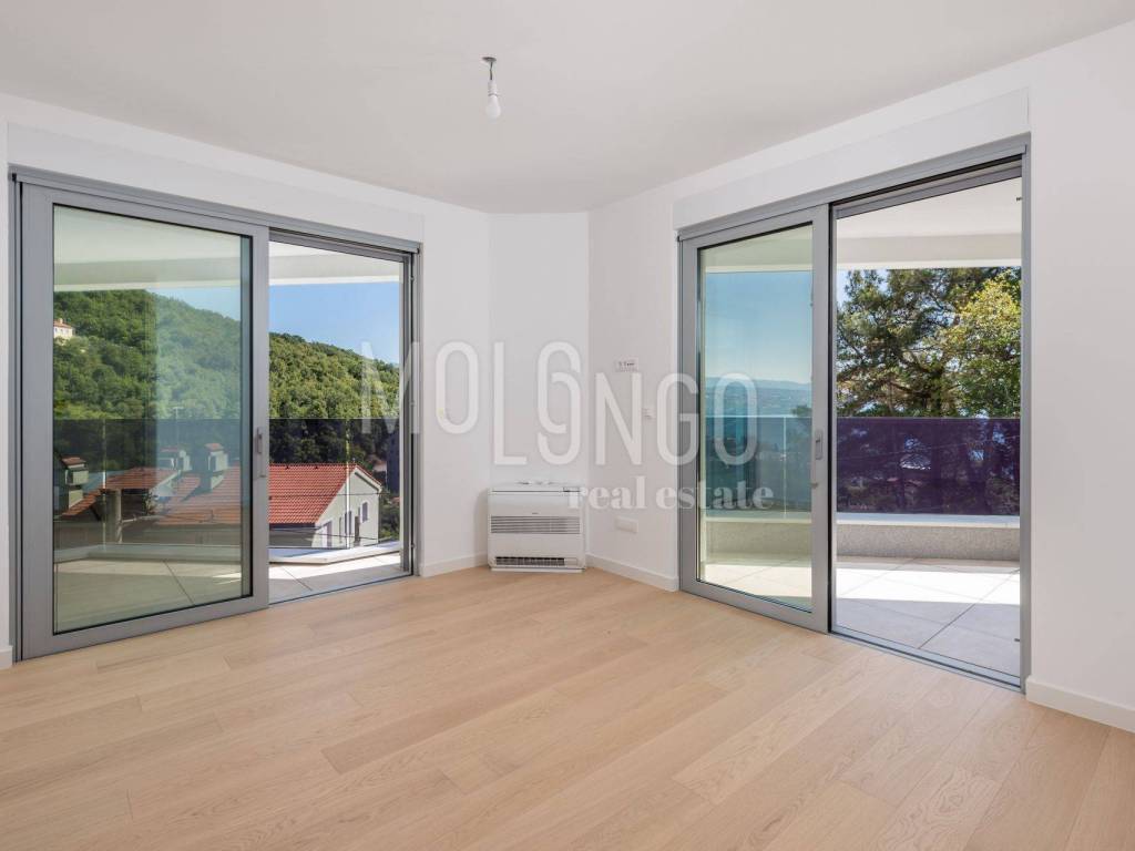 For sale: a luxury 2 bedroom apartment in a new building with a swimming pool, elevator and underground garage in the heart of Opatija, located in an ideal location with a view of the sea.
