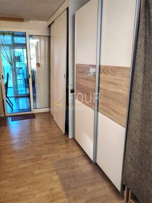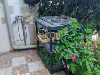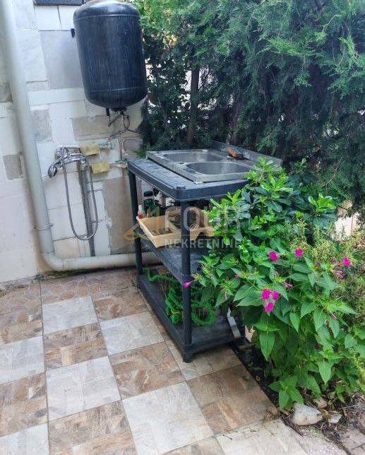 We offer a furnished apartment with a closed terrace and a landscaped garden of 41m2 for use. The apartment has an area of 33.88 m2 - 1 bedroom + living room, but in nature it is 55 m2 and functions as a 3-bedroom (entrance hall with built-in wardrobes, comfortable living room, two rooms, closed terrace with glass sliding wall and shutters - summer kitchen, pantry and dining room). The yard is beautifully landscaped, enriched with greenery and has the possibility of a swimming pool. A parking space is available in front of the building.