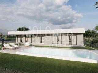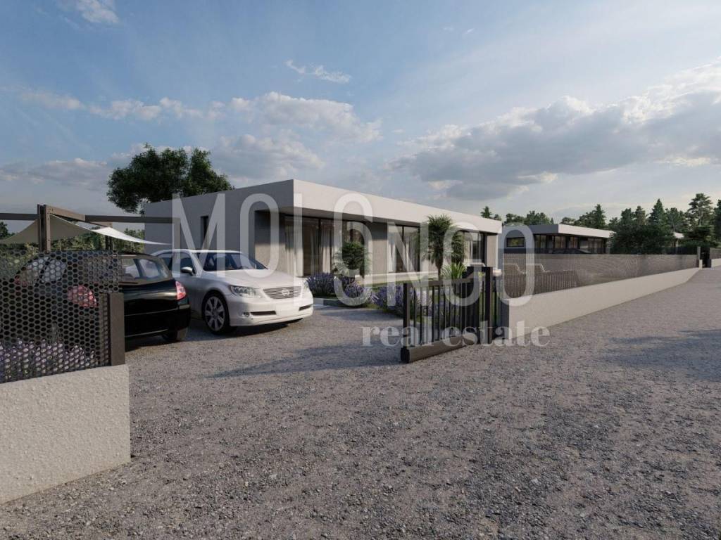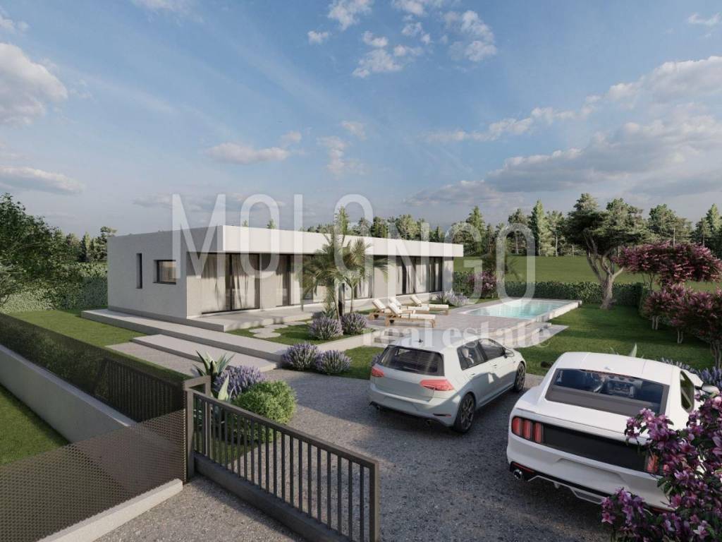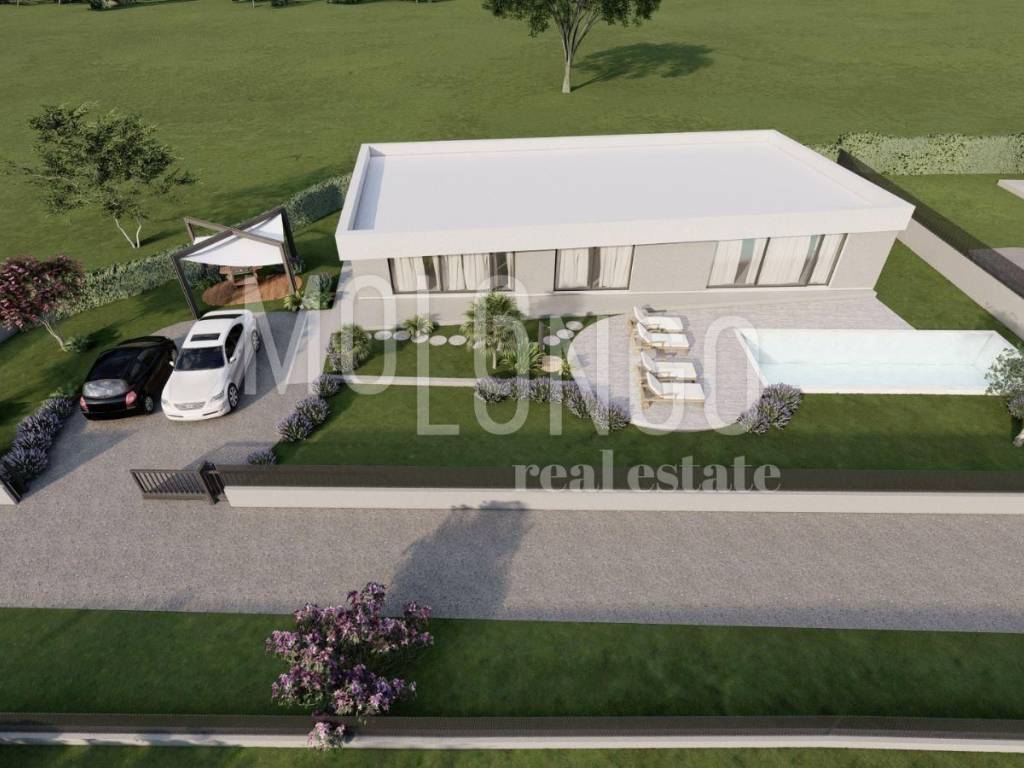 Detached house with a pool with a total area of 174.45 m2, consisting of two units on a plot of approx. 800 m2. The first unit consists of 3 bedrooms and a living room and a kitchen with an open dining area, and the second unit is of the same concept with only 2 bedrooms. The exit from both apartments is to the sunbathing area with an 8x4 swimming pool. The house has a modern design with a flat roof. There is underfloor heating via a heat pump and an air conditioner for additional cooling or heating of the air. Overall, this house is built in an excellent location that is close to all important amenities, but at the same time it is set back from the main road and unwanted views and offers a view towards the green area. The entrance to the street is provided with a ramp so that only the owners or their guests can access it, and there is a children's park right at the entrance. This house is an excellent example of a modern construction style with an emphasis on functionality and comfort.