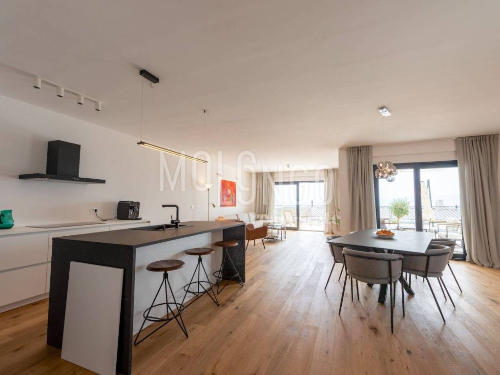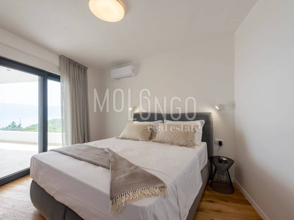 A semi-detached house in Kostrena with a sea view and a swimming pool, built in 2022, offers a modern and comfortable living space with numerous amenities.